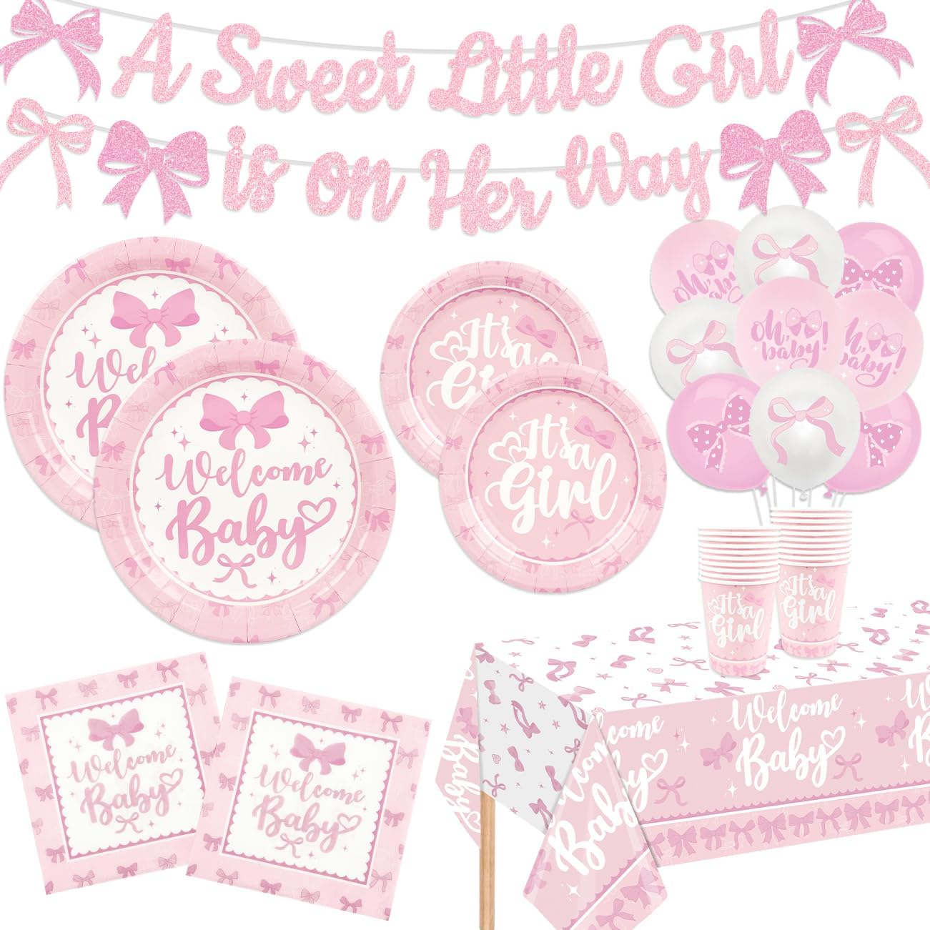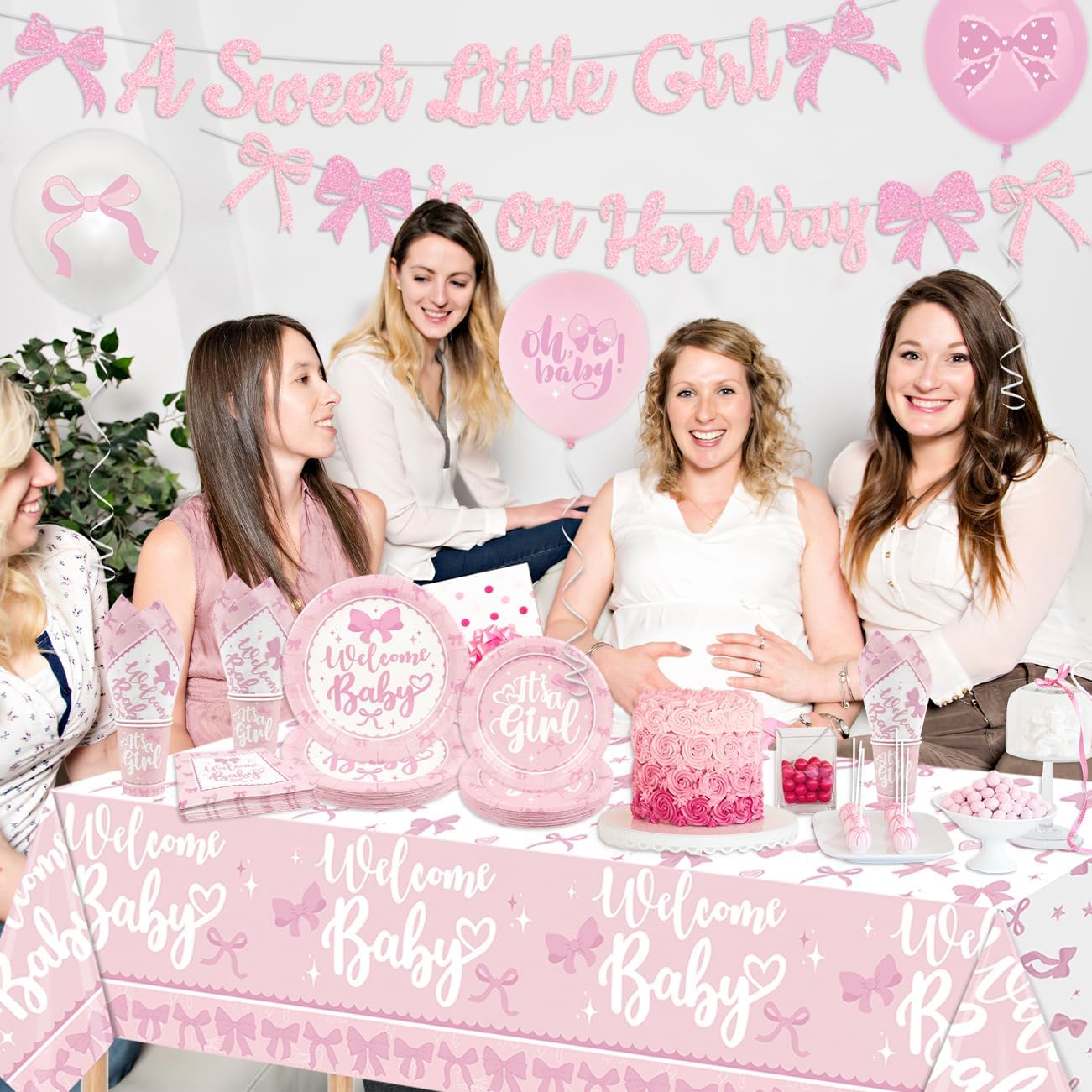 Pink Bows Baby Shower Decorations (Pink)