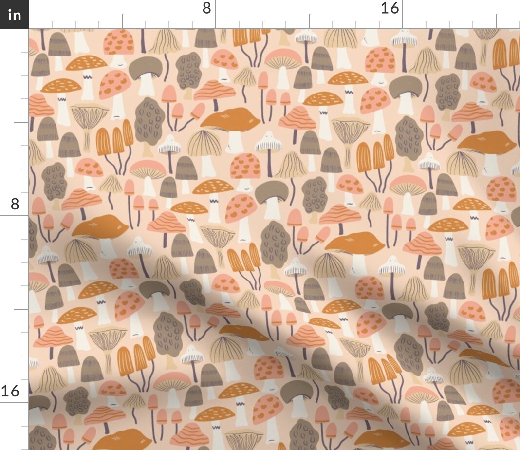 Pink Brown Floral Orange Forest Woodland Earth Autumn Fall Mushroom Toadstool Cozy Cottage Custom Printed Fabric by Spoonflower Various Fabrics by the Yard or Fat Quarter