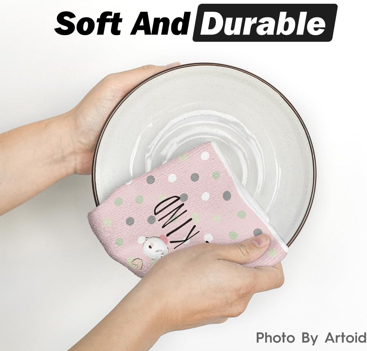 Pink Bunny Rabbit Ears Floral Leaves Easter Kitchen Towels Dish Towels, 18x26 Inch Be Kind Seasonal Decoration Hand Towels Set of 4
