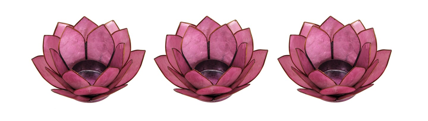 Pink Capiz Shell Lotus Flower Small Tealight Candle Holder Set of 3