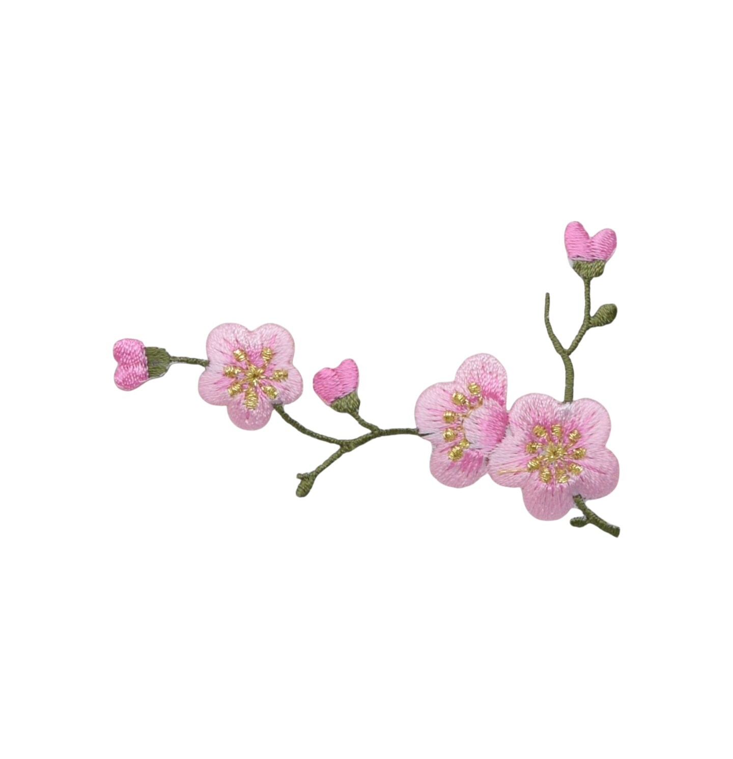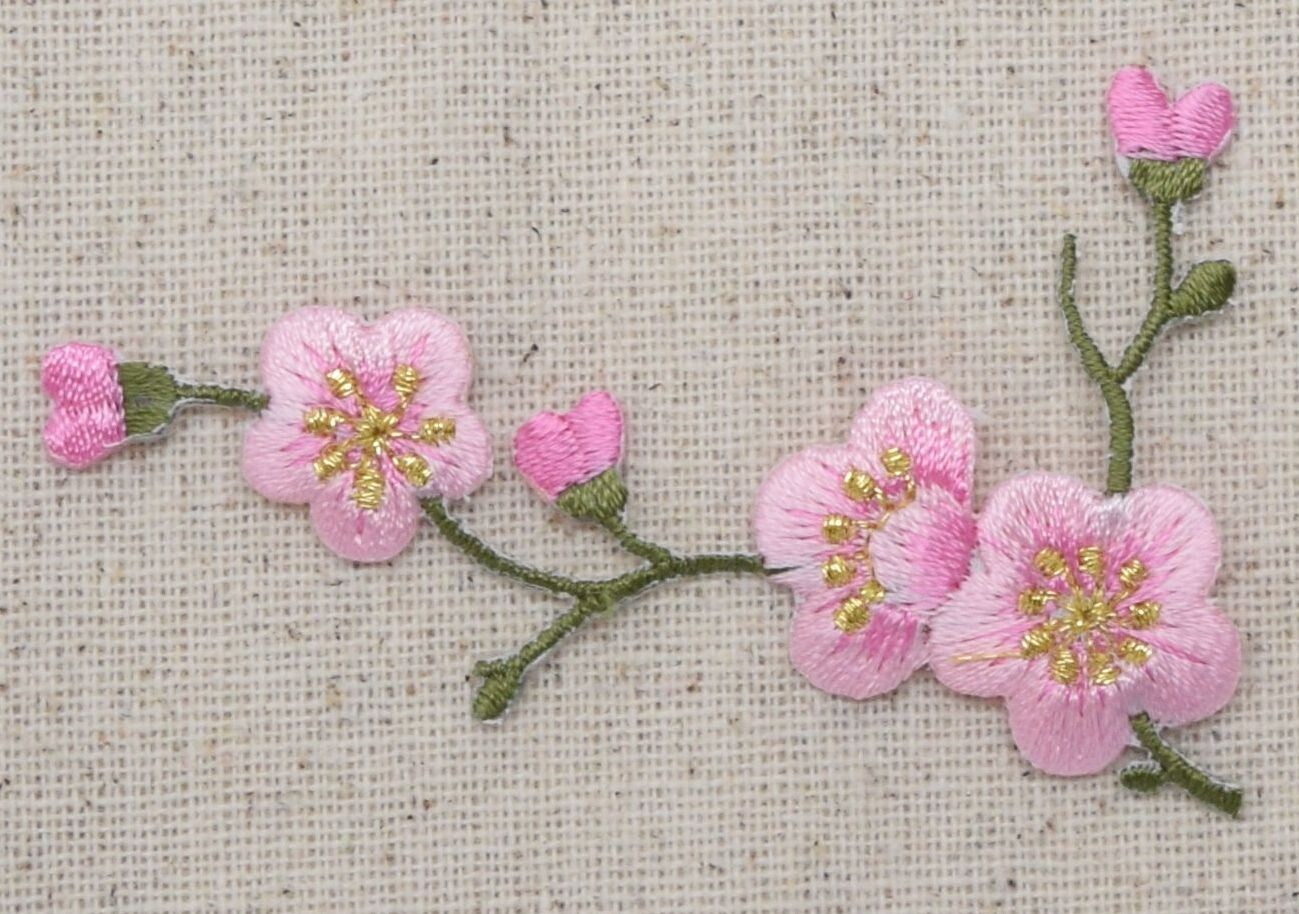 Pink Cherry Blossom - Left Embroidered, Iron on Patch