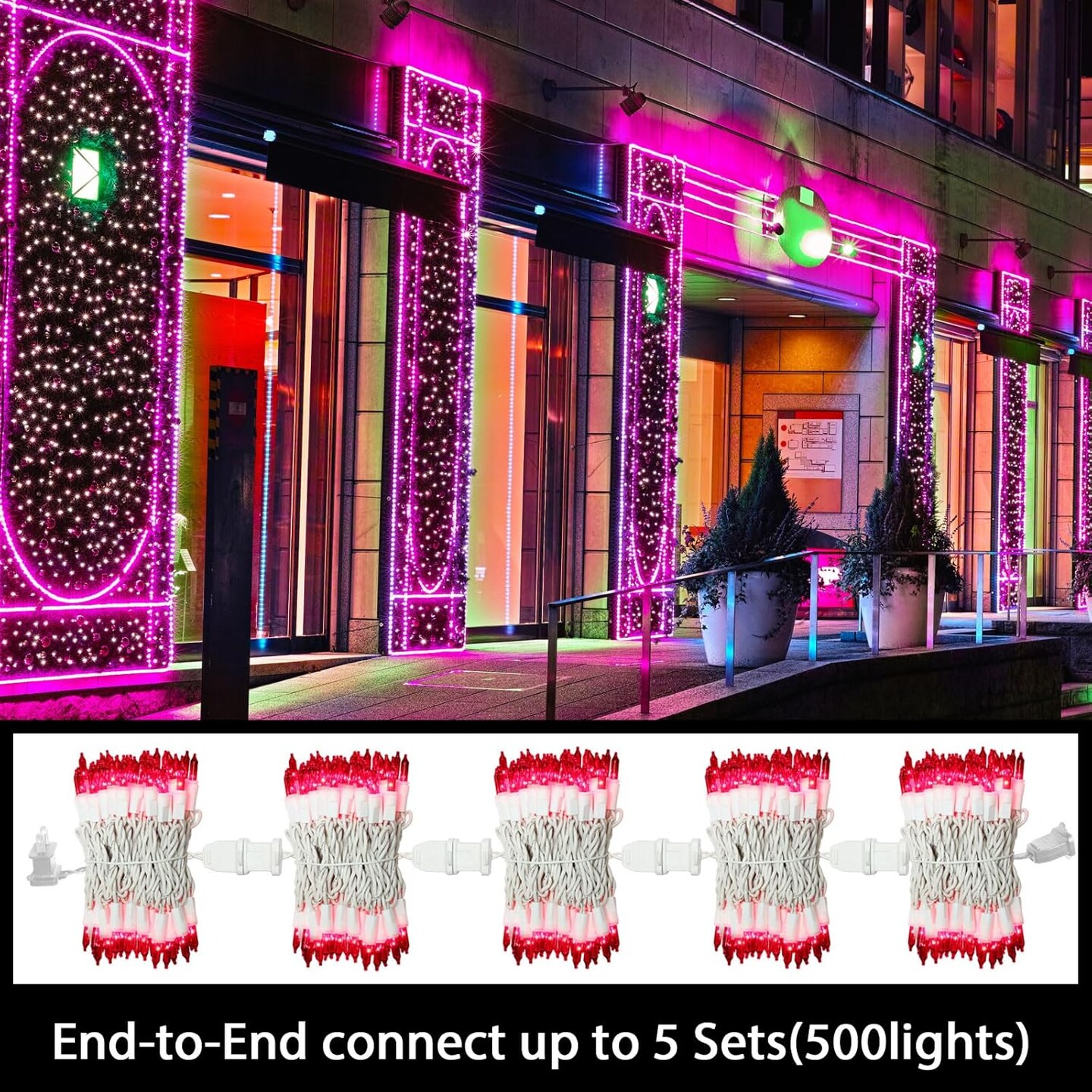 Pink Christmas Lights Set 100 Count 19.6 Feet Incandescent Bulb Mini String Lights for Indoor Christmas Tree Garland Birthday Wedding Party Festival Decoration, White Wire