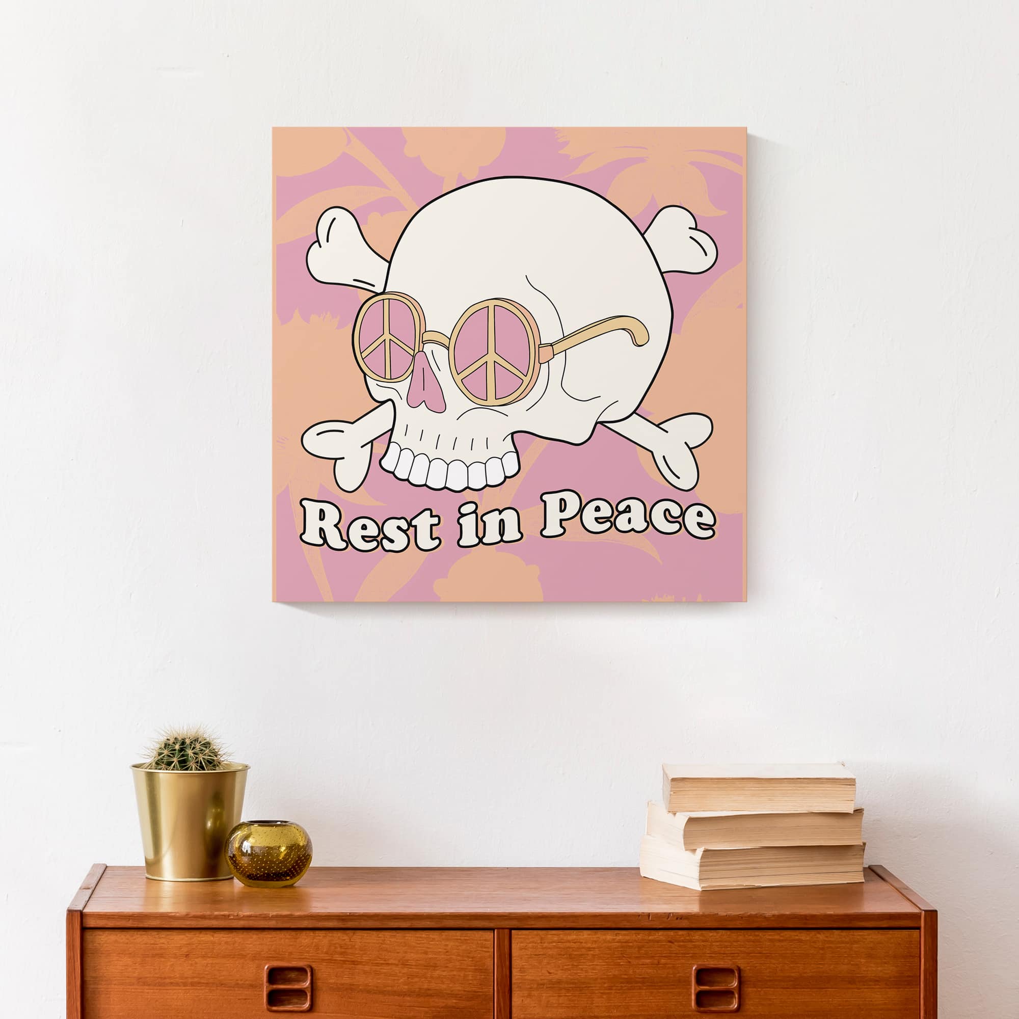 Pink & Coral Skull Rest in Peace Canvas Wall Art