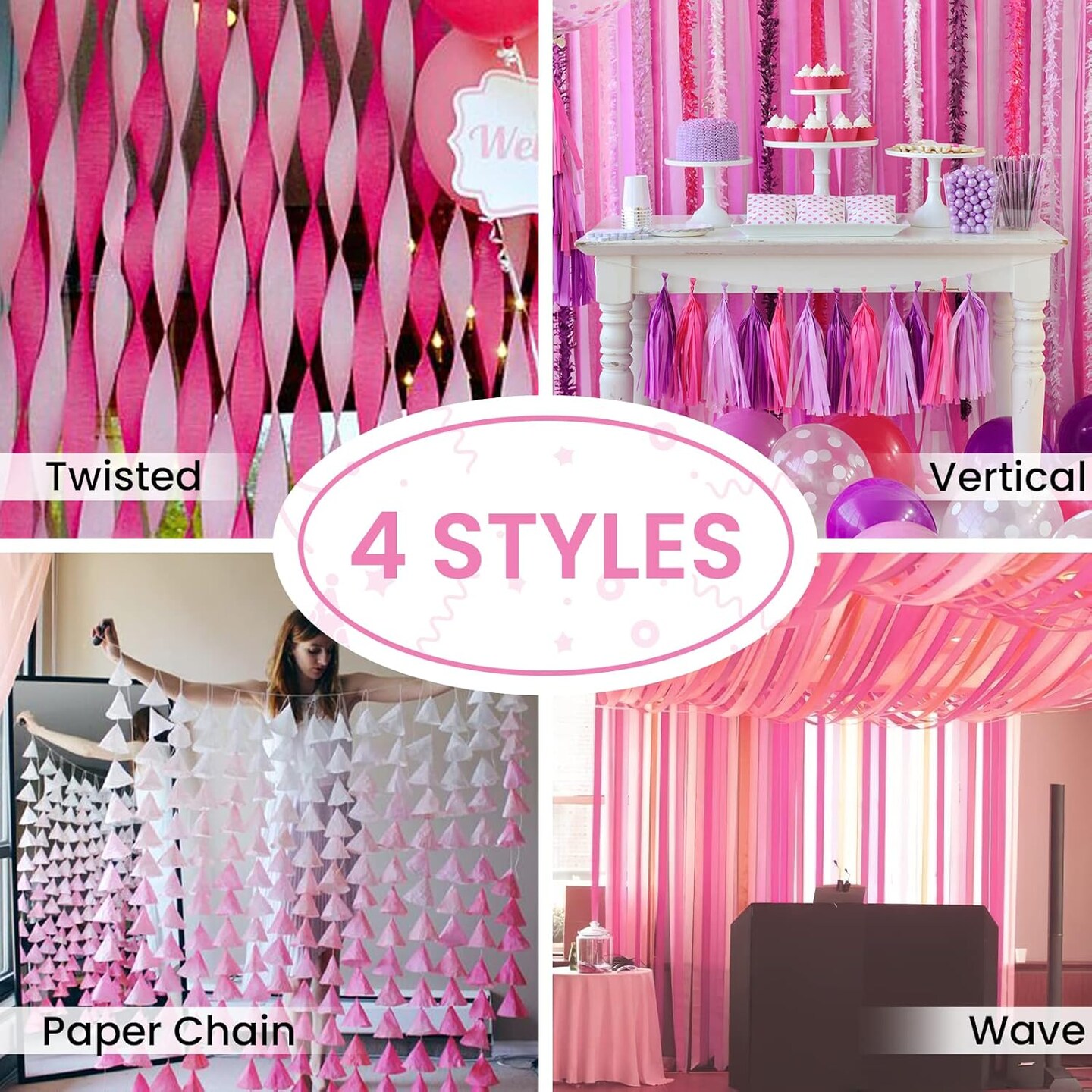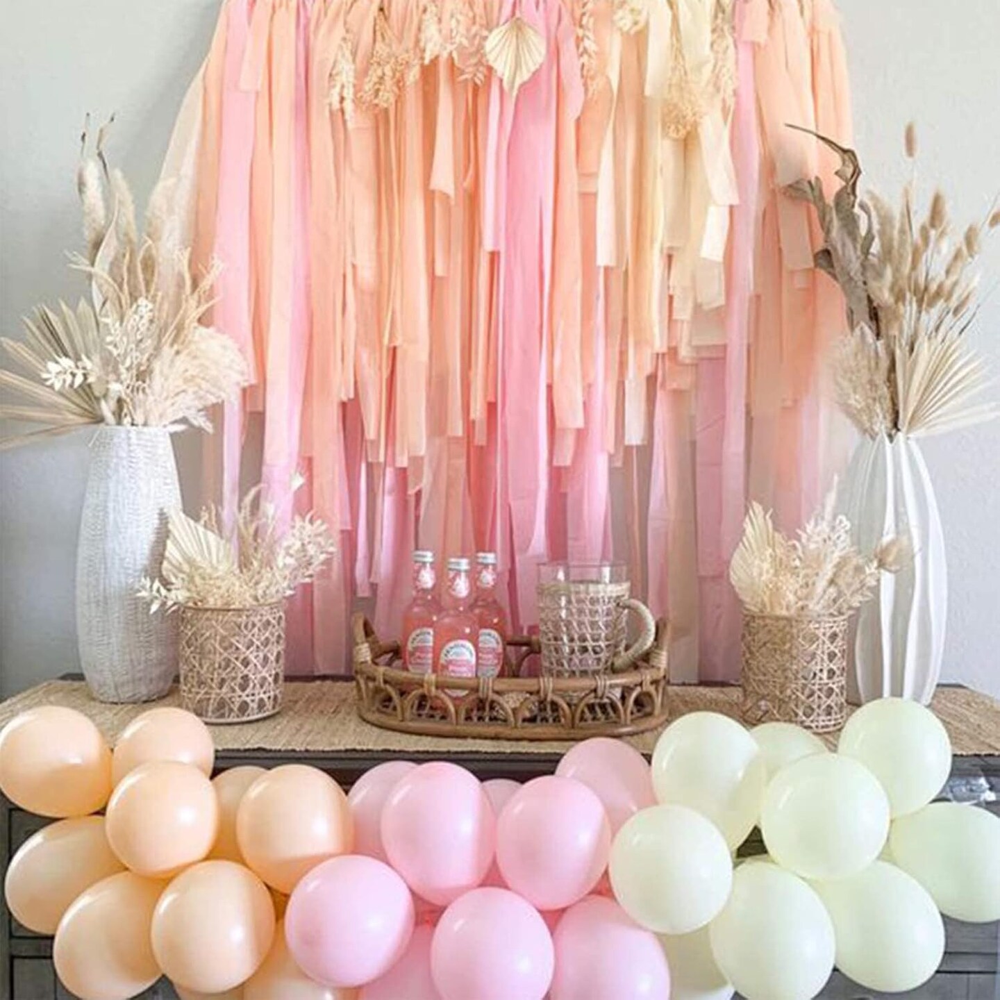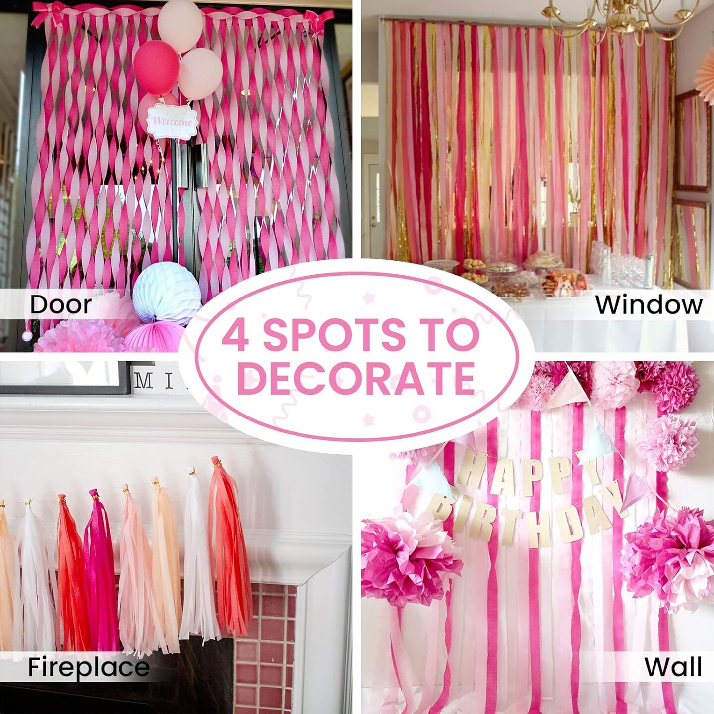 Pink Crepe Paper Streamers 6 Rolls 492 ft Pack of Light and Hot Pink Peach Light Yellow Crepe Paper for Wedding Baby Shower Gender Reveal Birthday Party Decorations (1.8 Inch x 82 Ft/Roll)