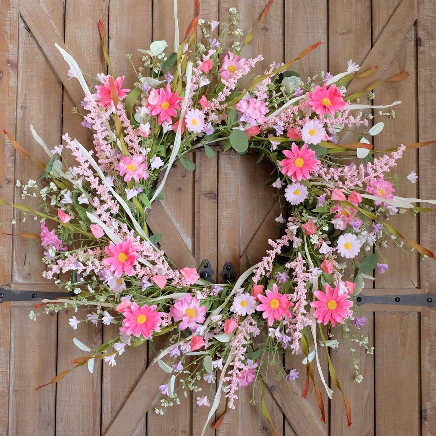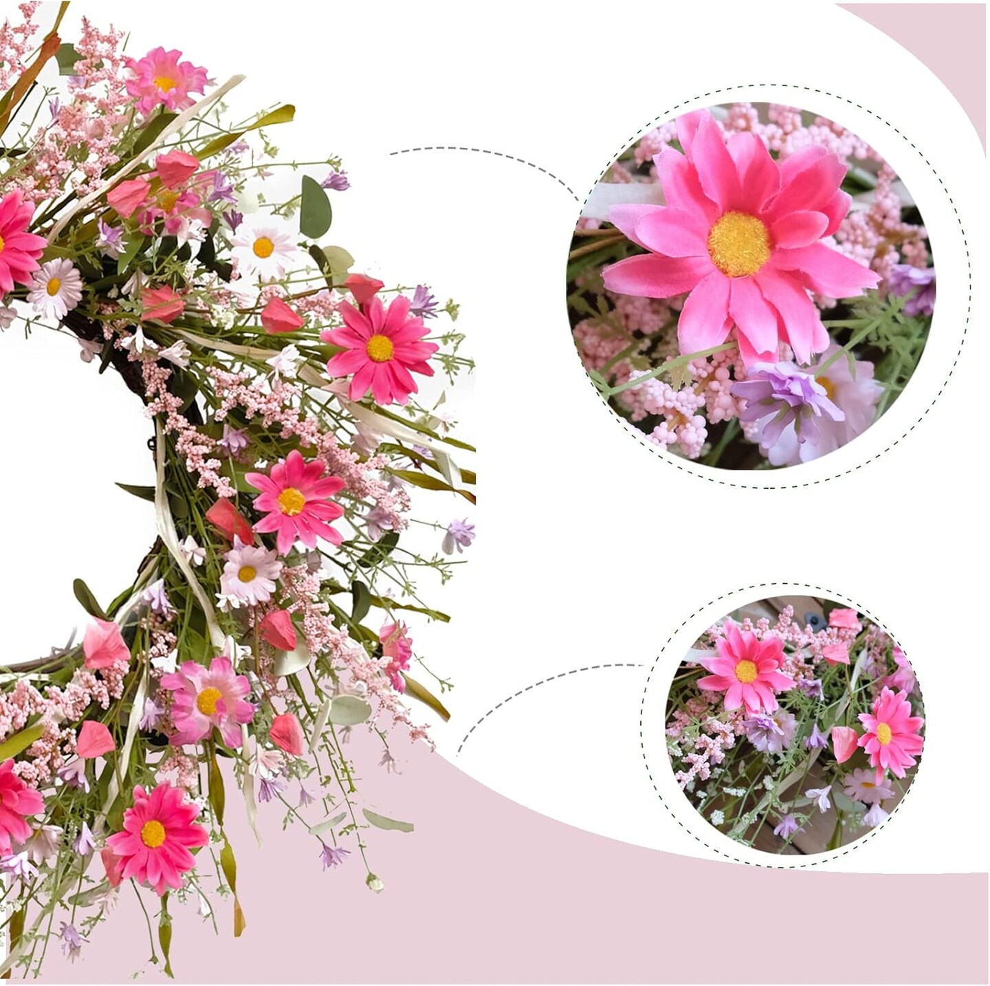 Pink Daisy and Lavender Wreath 22" Spring and Summer Wreath Artificial Spring Wreath Silk Summer Wreath for Front Door Garden Party Home Wall Wedding Decor
