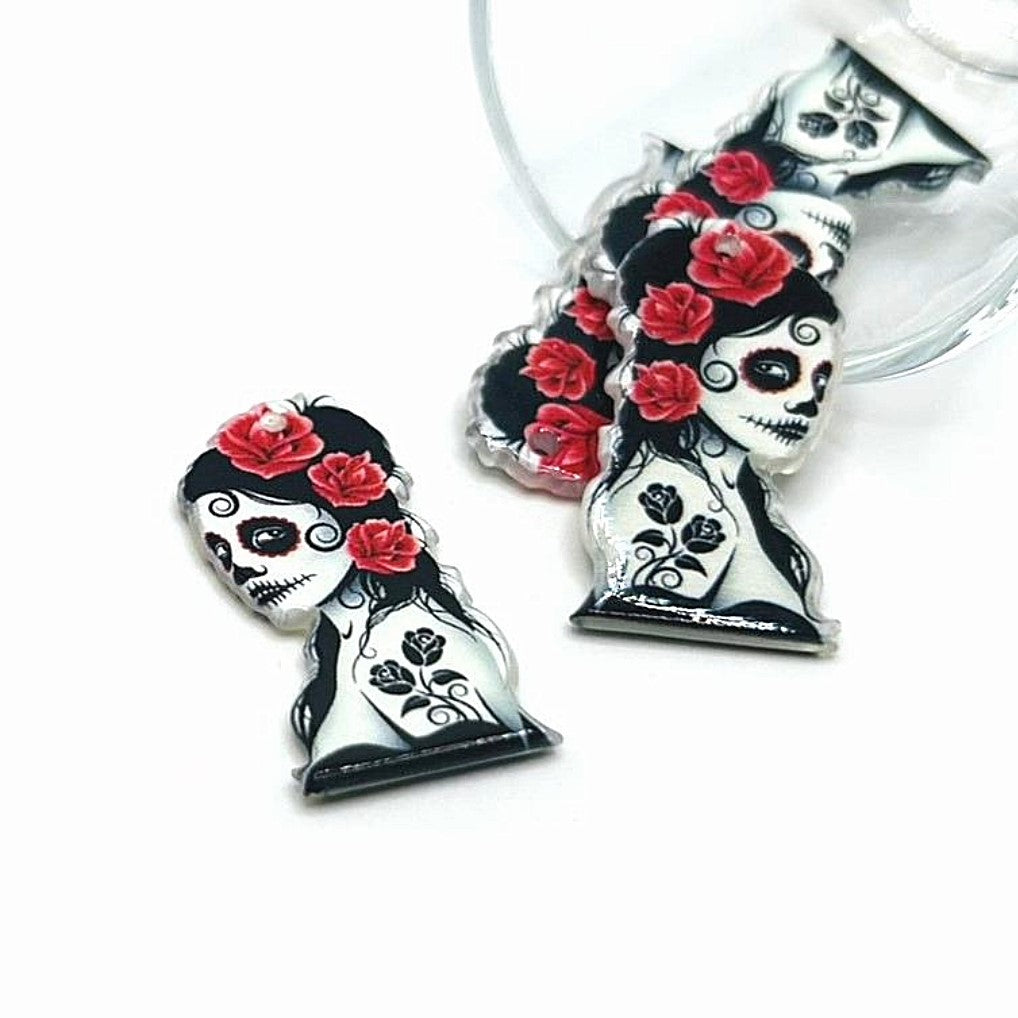 Pink Dia De Los Muertos Pendant, 35x18mm