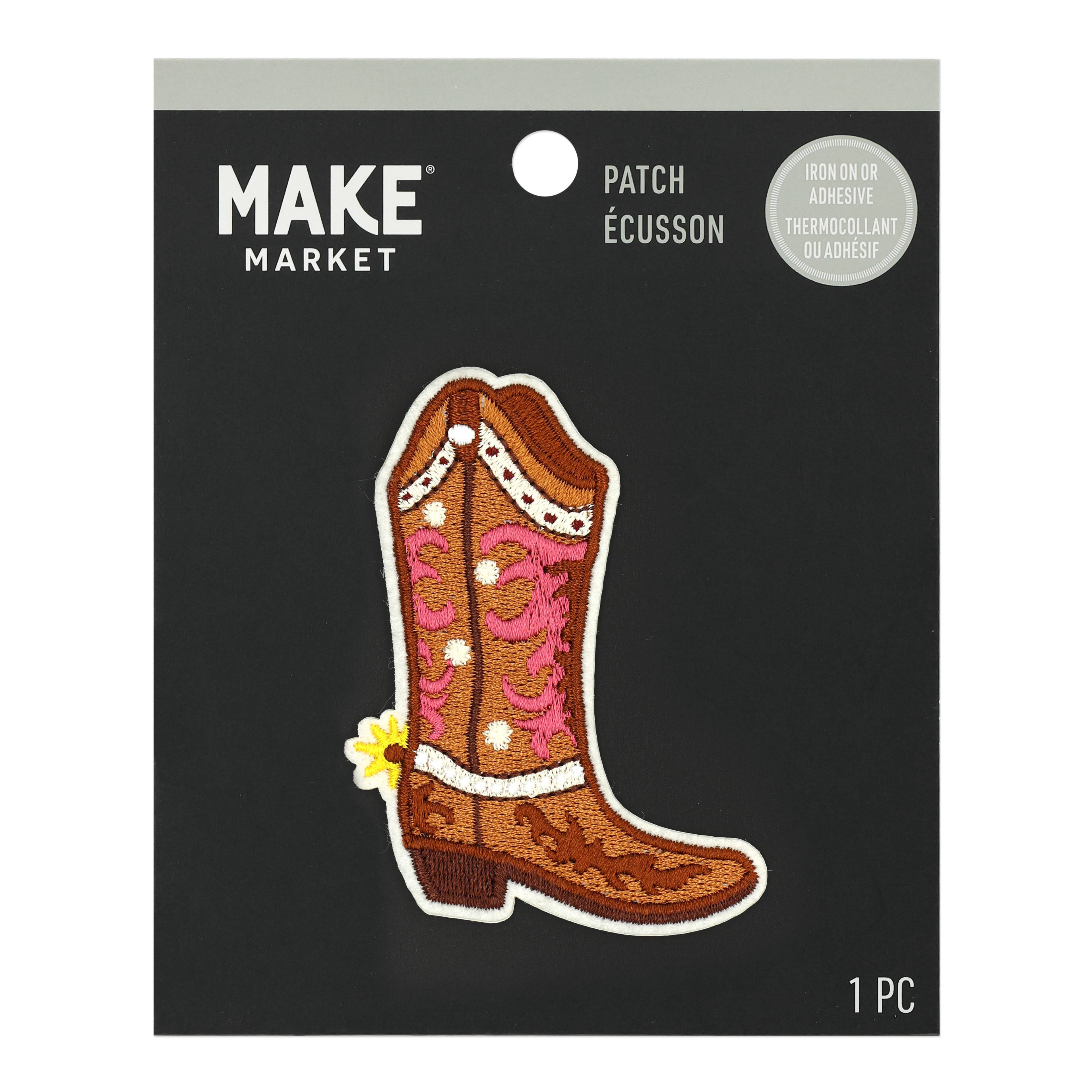 Pink Embroidered Cowboy Boot Iron On & Adhesive Patch by Make Market®