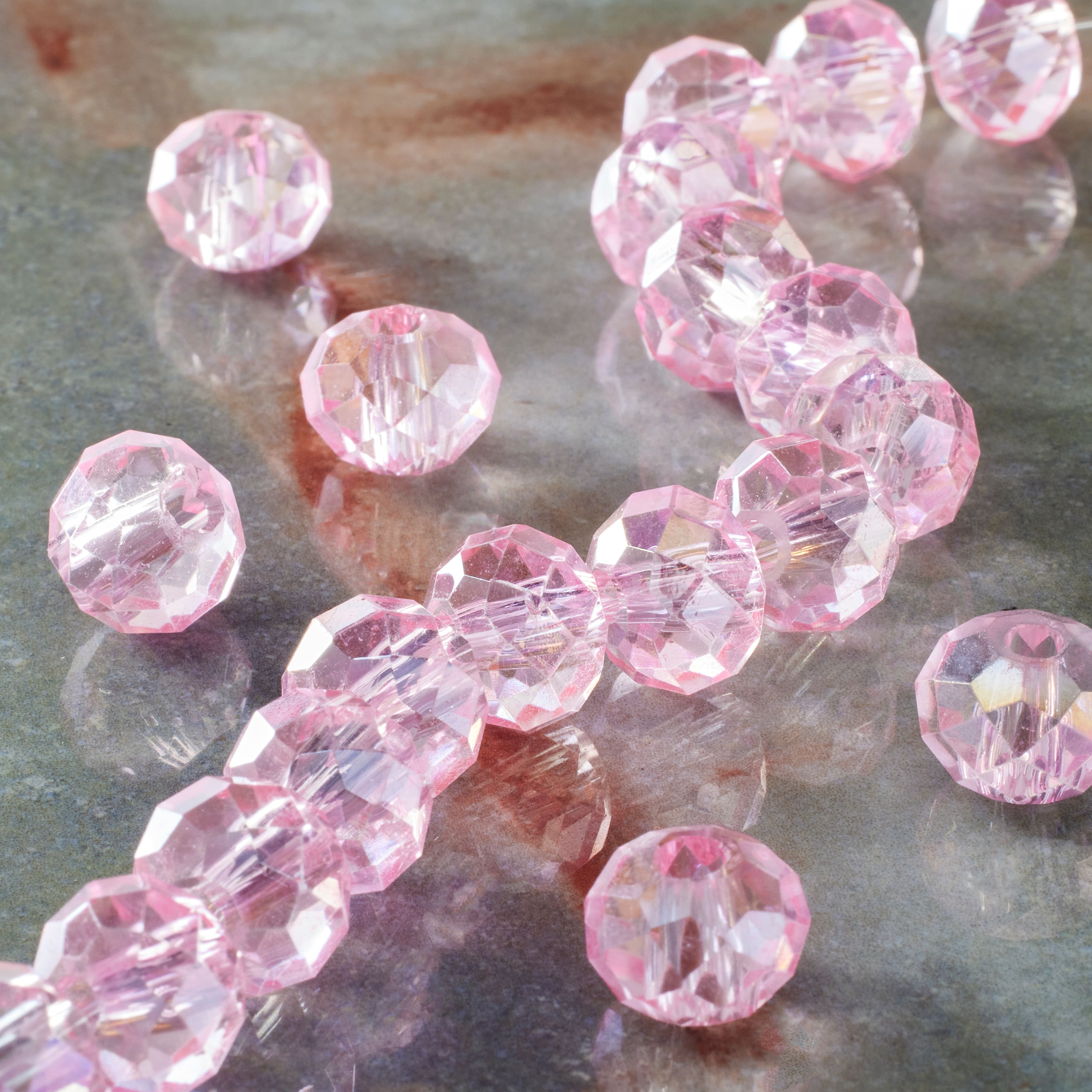 Pink Faceted Large Hole Glass Rondelle Beads by Bead Landing™