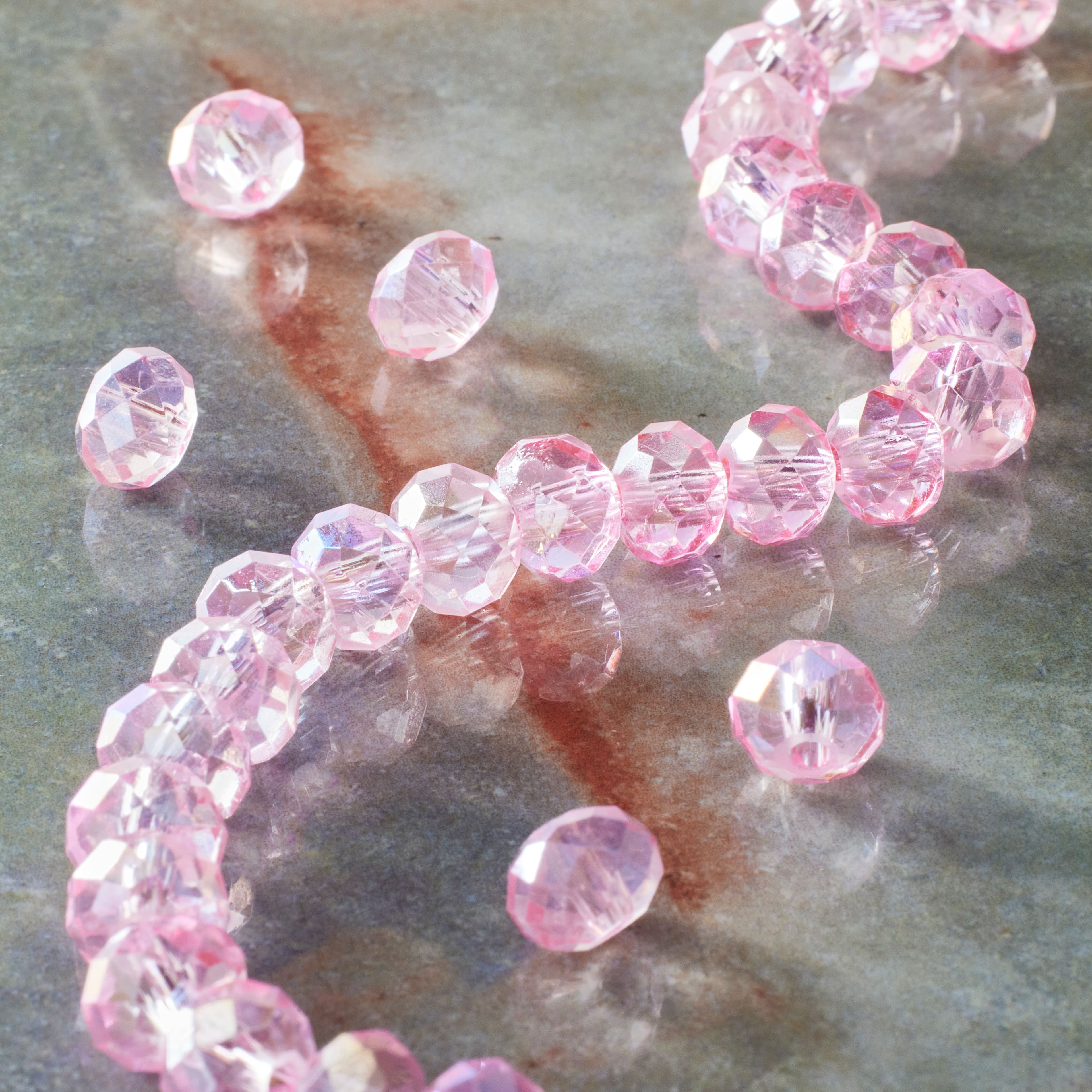 Pink Faceted Large Hole Glass Rondelle Beads by Bead Landing™