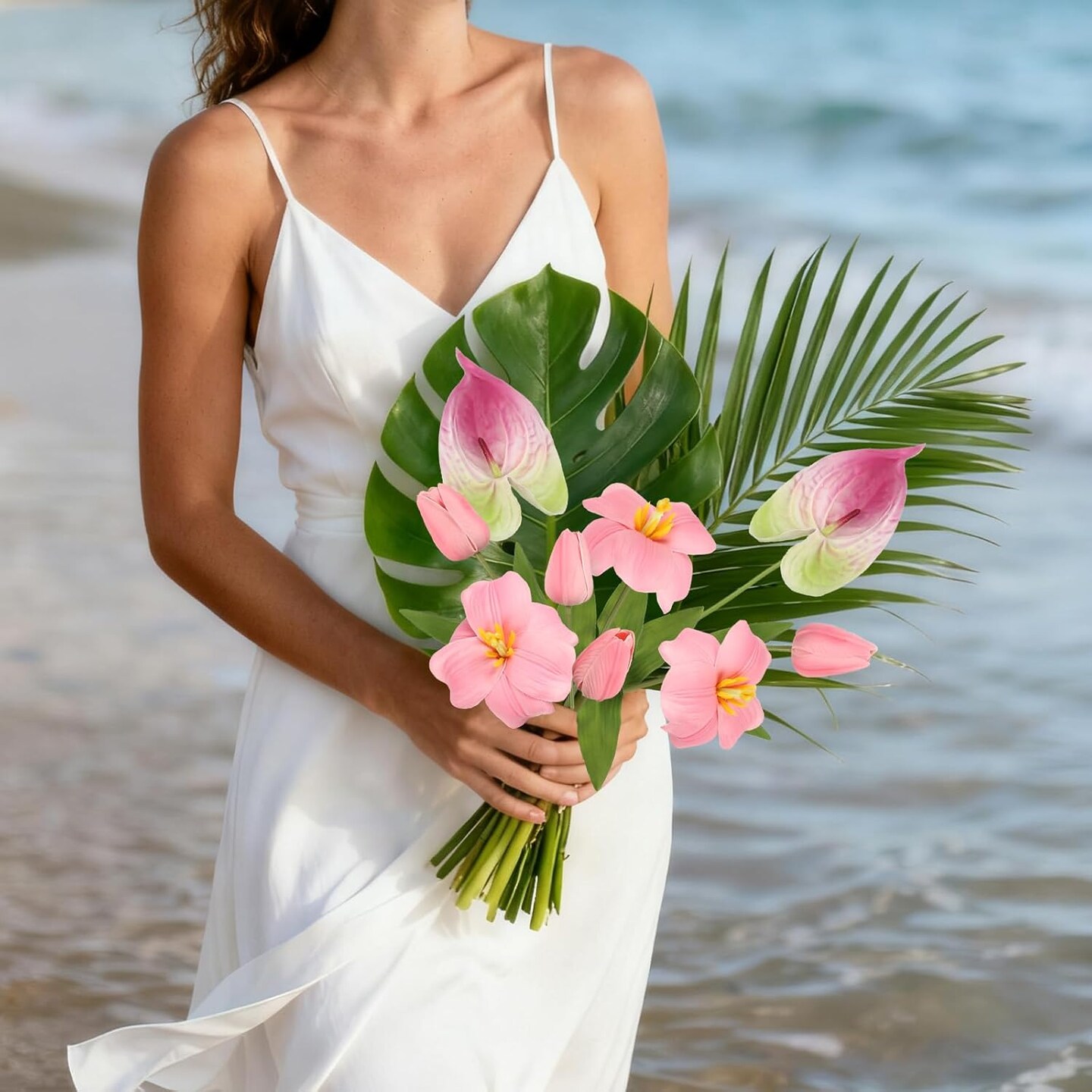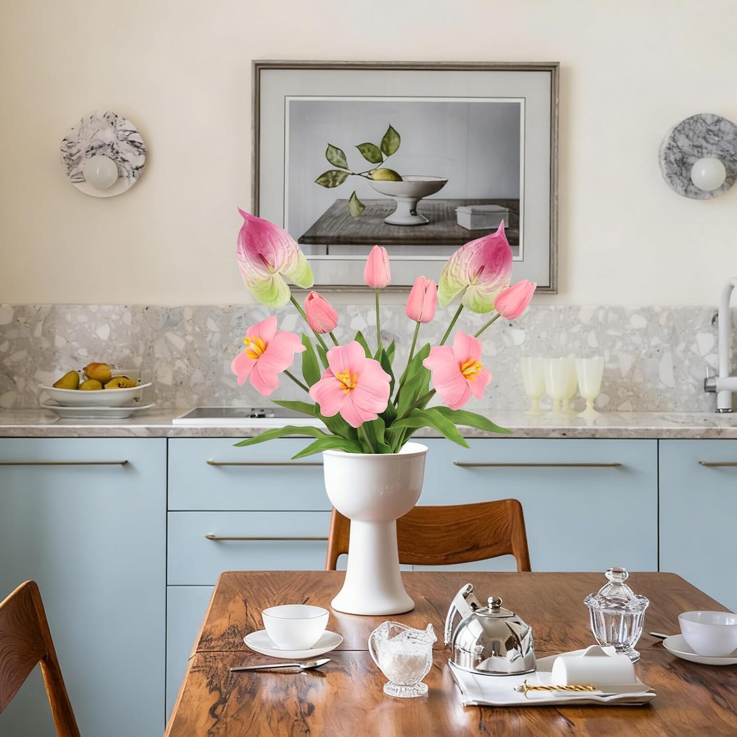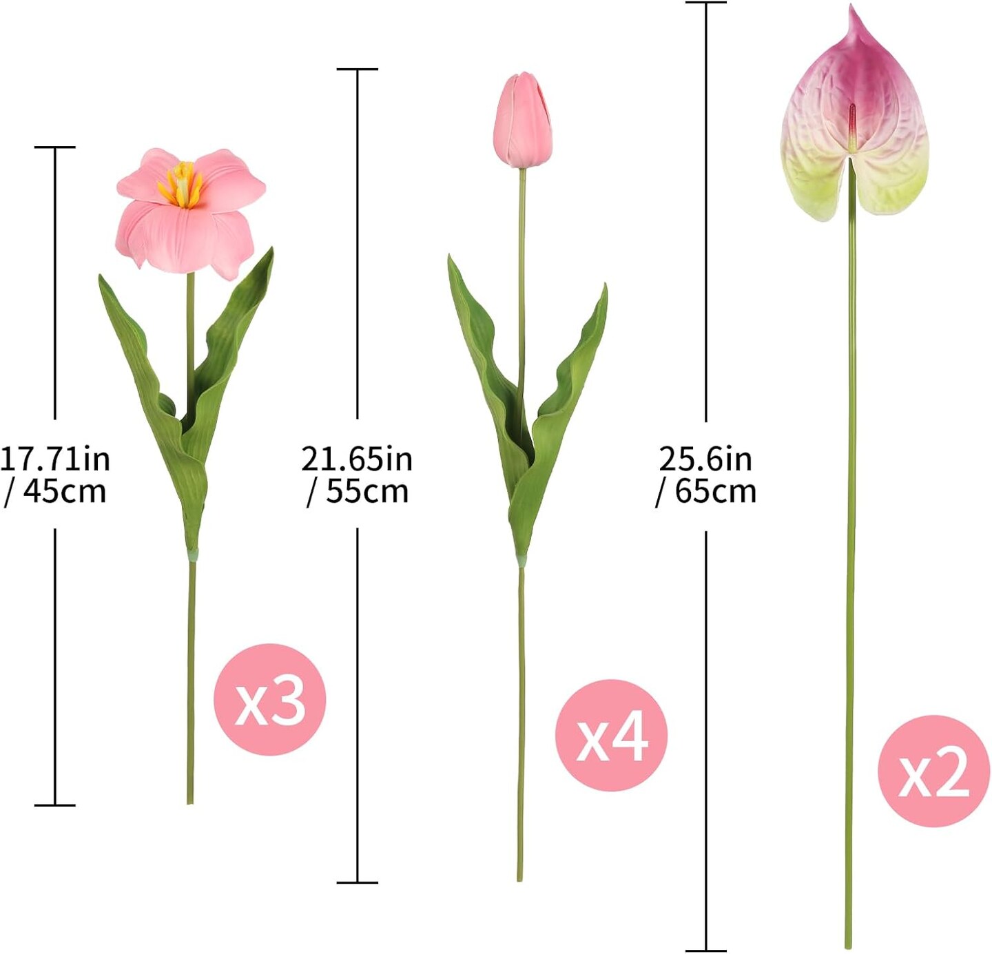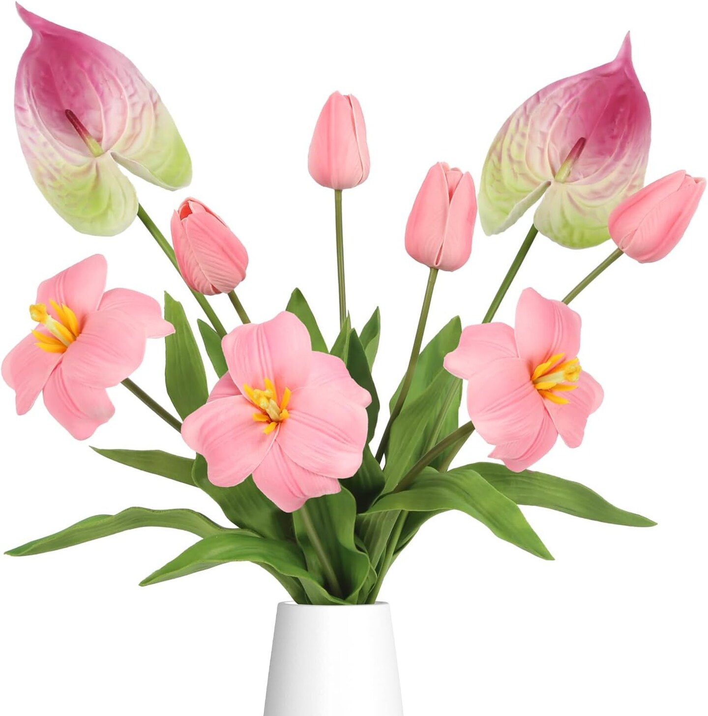 Pink Fake Tulips & Anthurium Combo – Real Touch PU Faux Flowers for Vase, Wedding, Bridal Bouquet, Home Table Centerpieces, Spring & Easter Decor