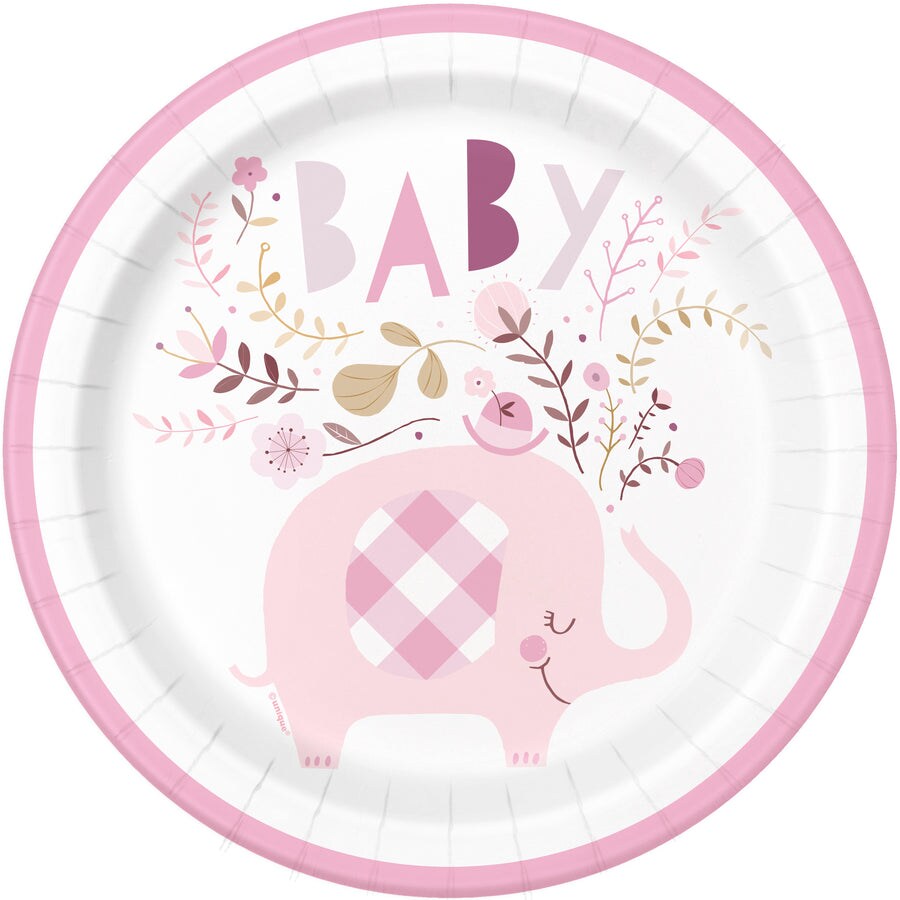 Pink Floral Elephant Round 9" Dinner Plates, 8ct