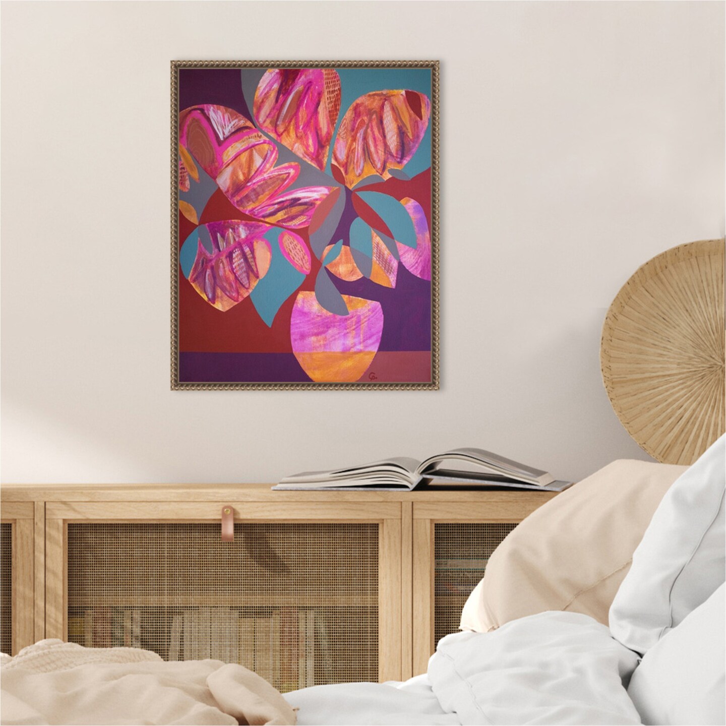 Pink Flowers by Gabriela Avila Framed Canvas Wall Art
