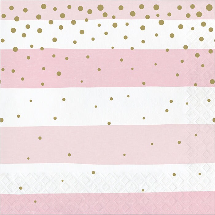 Pink Gold Celebration Stripes Luncheon Napkin (16/Pkg)