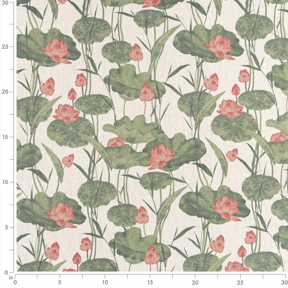Pink Green Stain Resistant Performance Floral Leaves Botanical Print Upholstery Fabric by The Yard - SKU: Lenox Blush