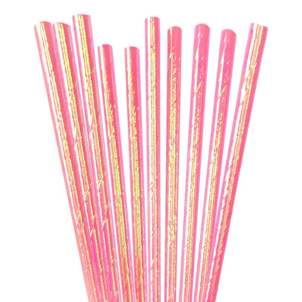 Pink Iridescent Cake Pop Party Straws