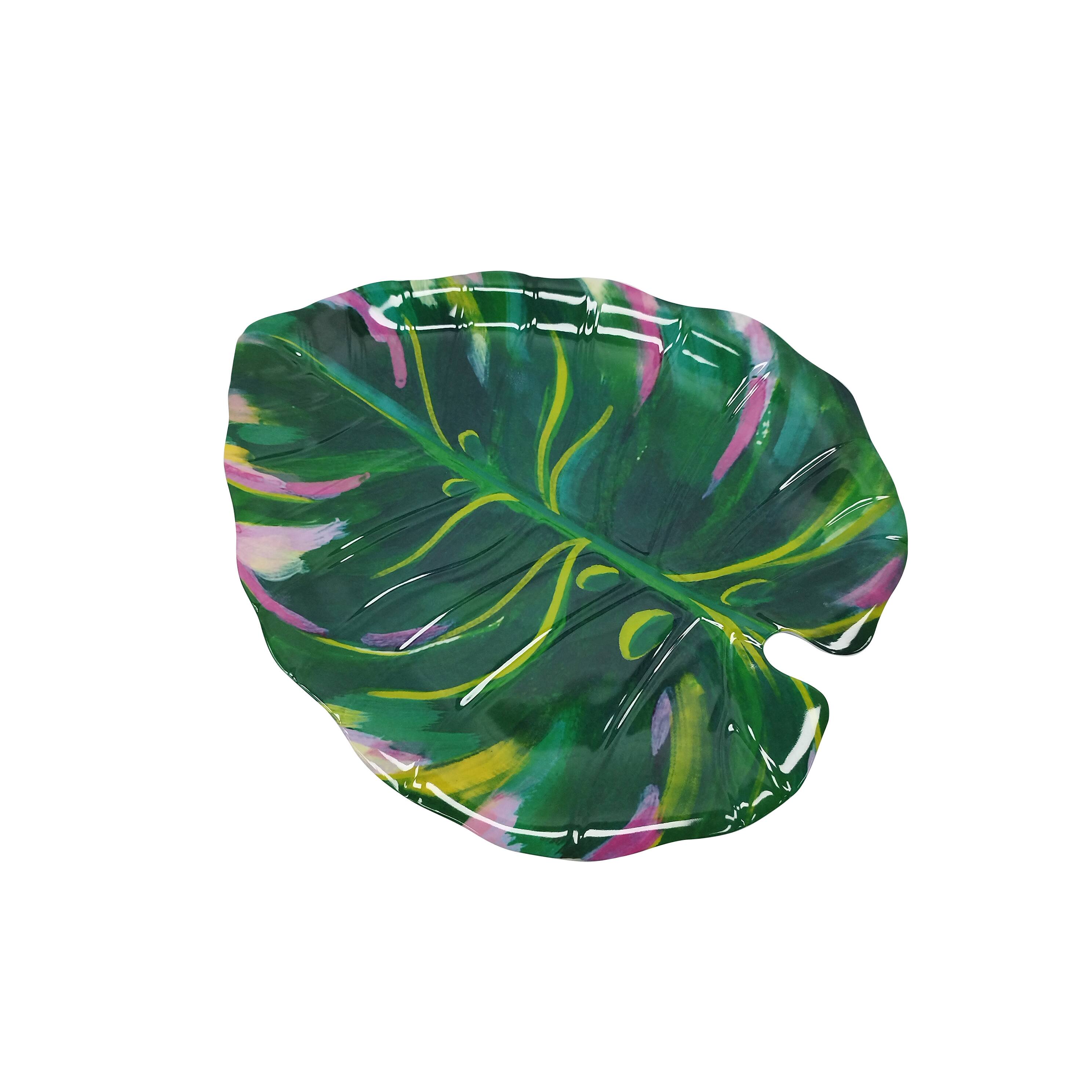 Pink Jungle 16" Green Monstera Leaf Platter by Celebrate It™