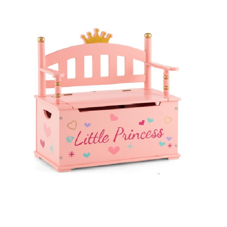 Pink Kids Storage Bench with Lid and Armrests Toy Organizer Chest for 3+ Year Olds