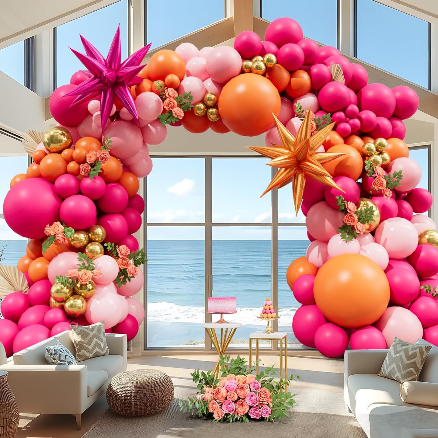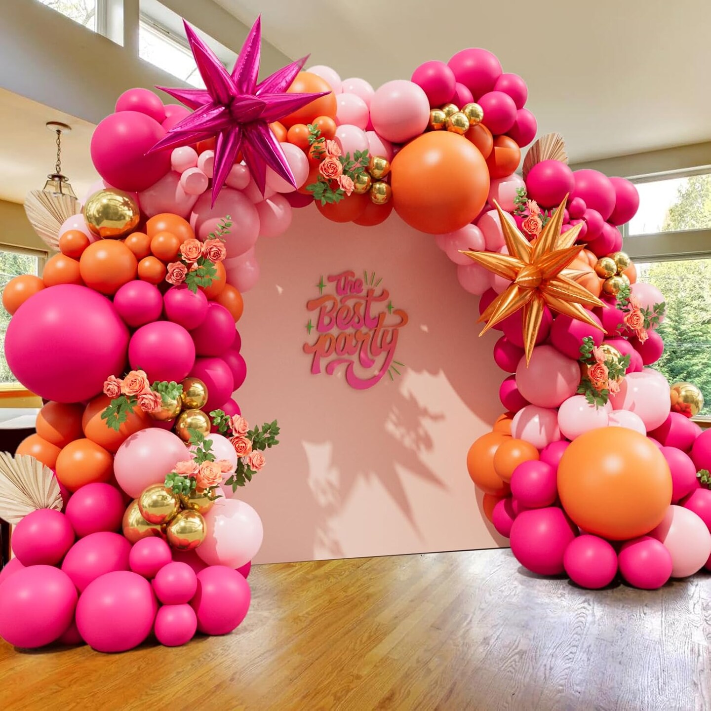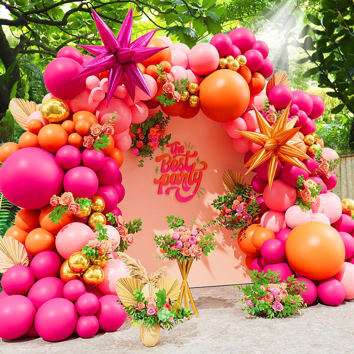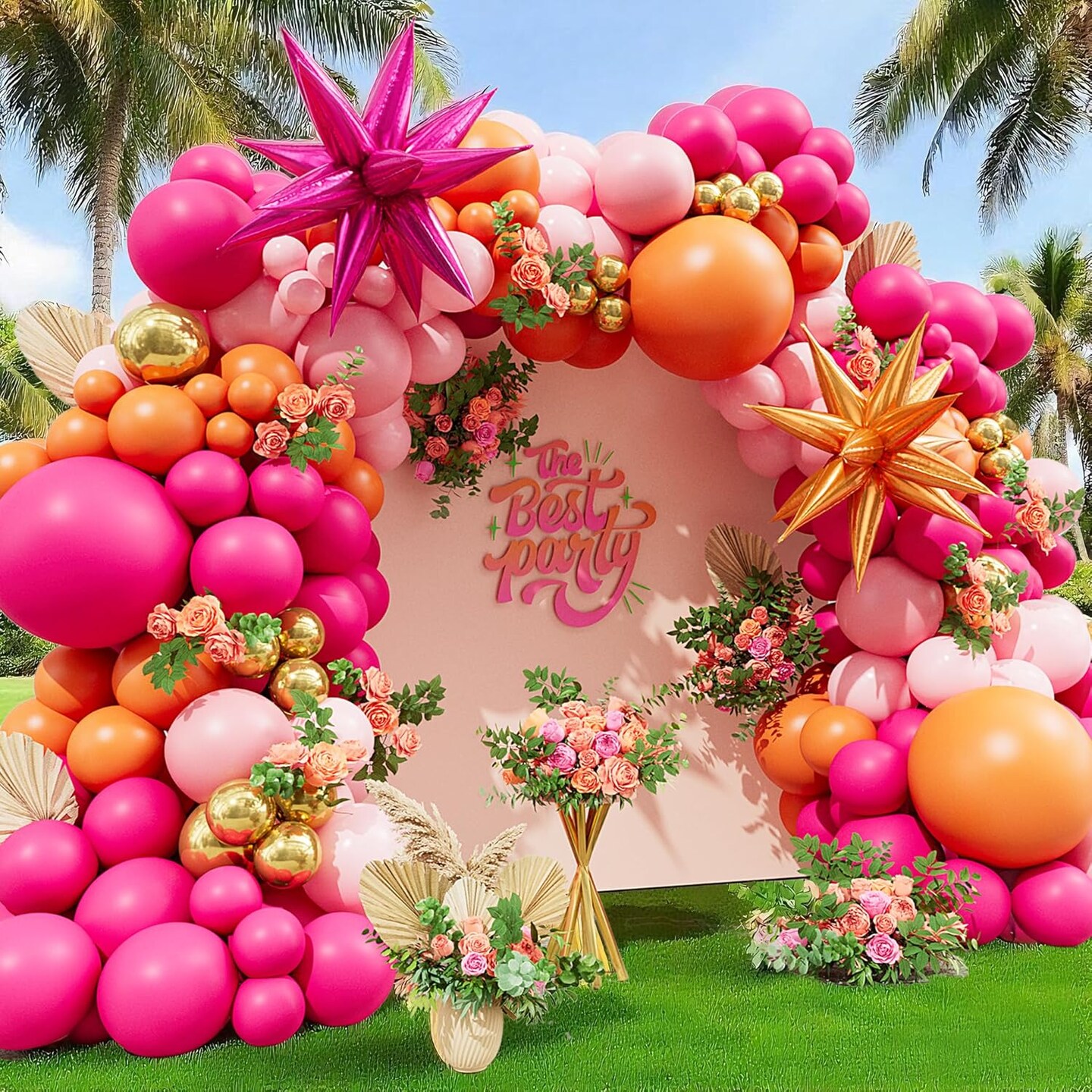 Pink Orange Balloon Garland Arch Kit (Pink)