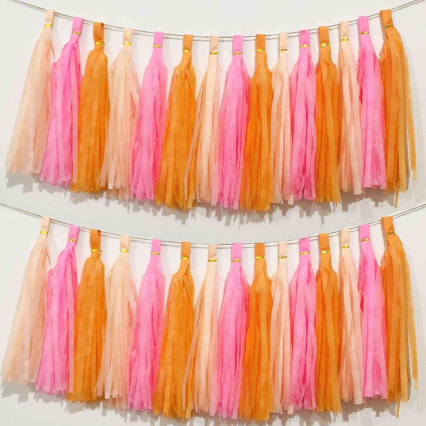 Pink Orange Peach Tissue Paper Tassels Party Tassel Garland Banner for Pumpkin Birthday Baby Bridal Shower Groovy Party Decoration, DIY Kits,15PCS