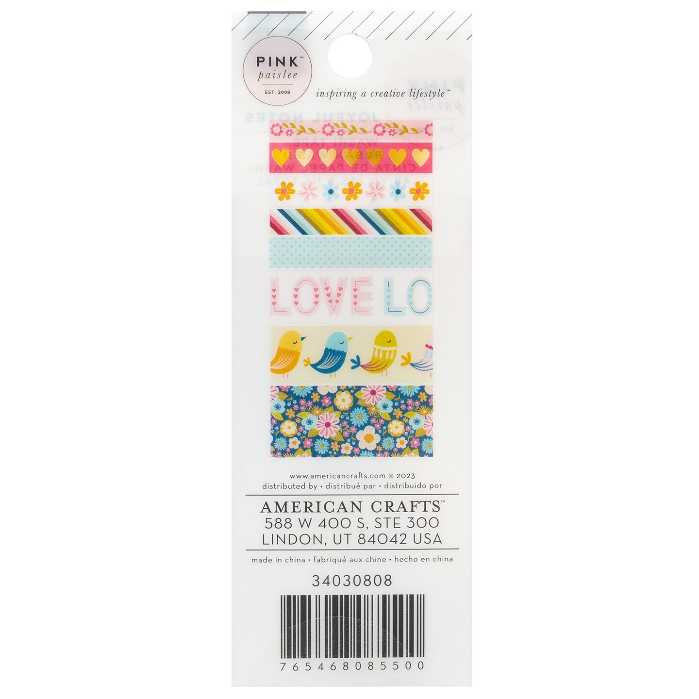 Pink Paislee Joyful Notes Washi Tape-8/Pkg