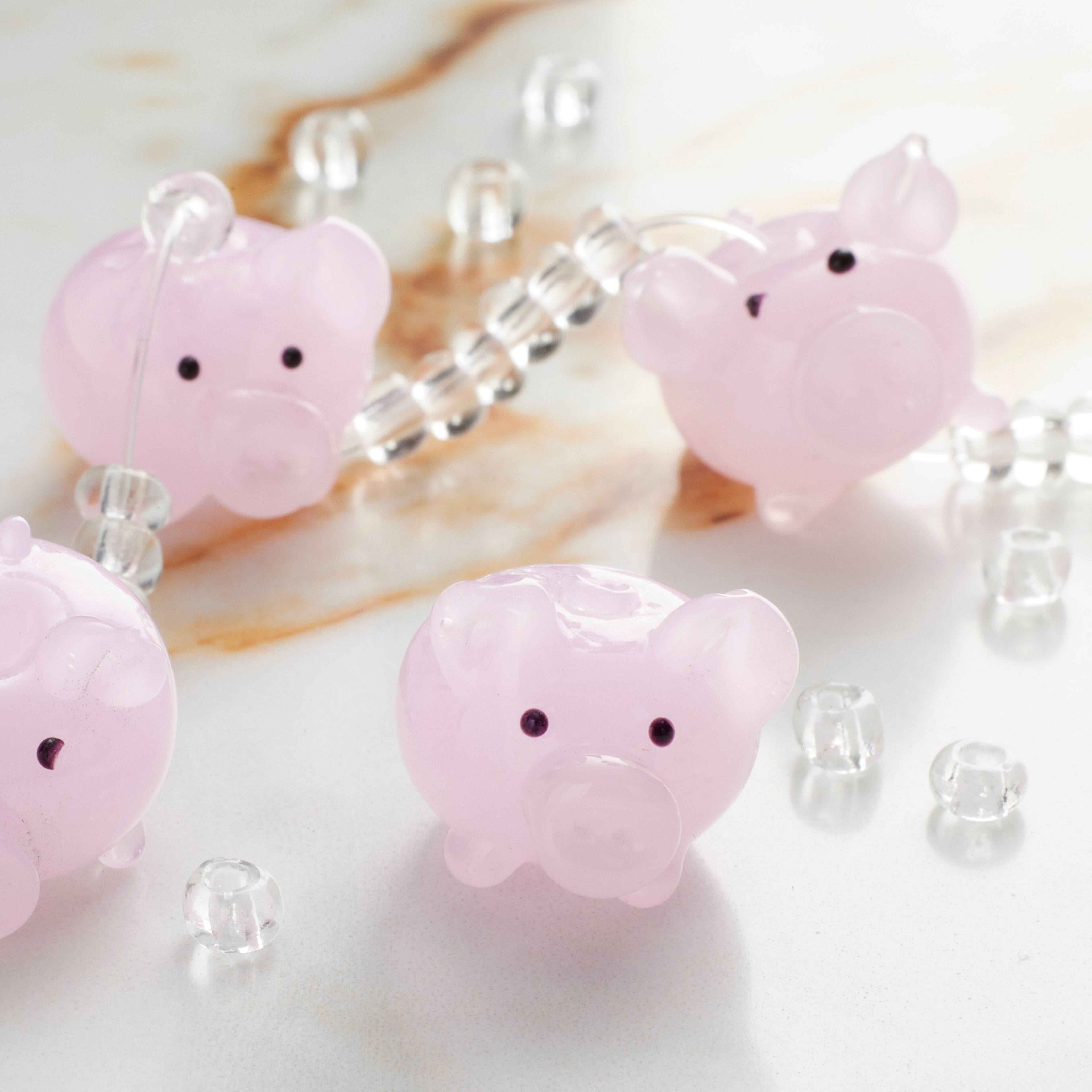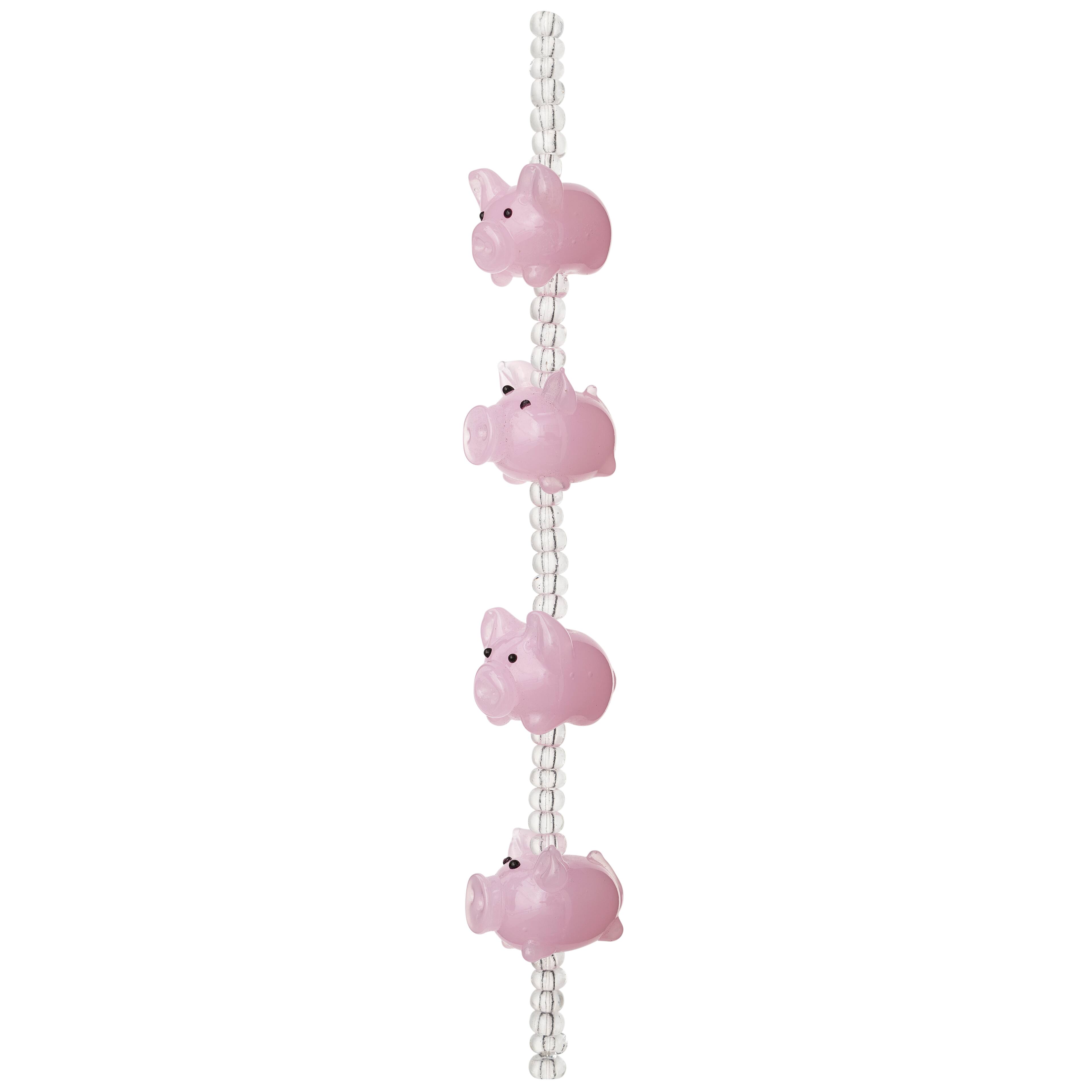 Pink Pig Glass Lampwork Beads, 20mm by Bead Landing™