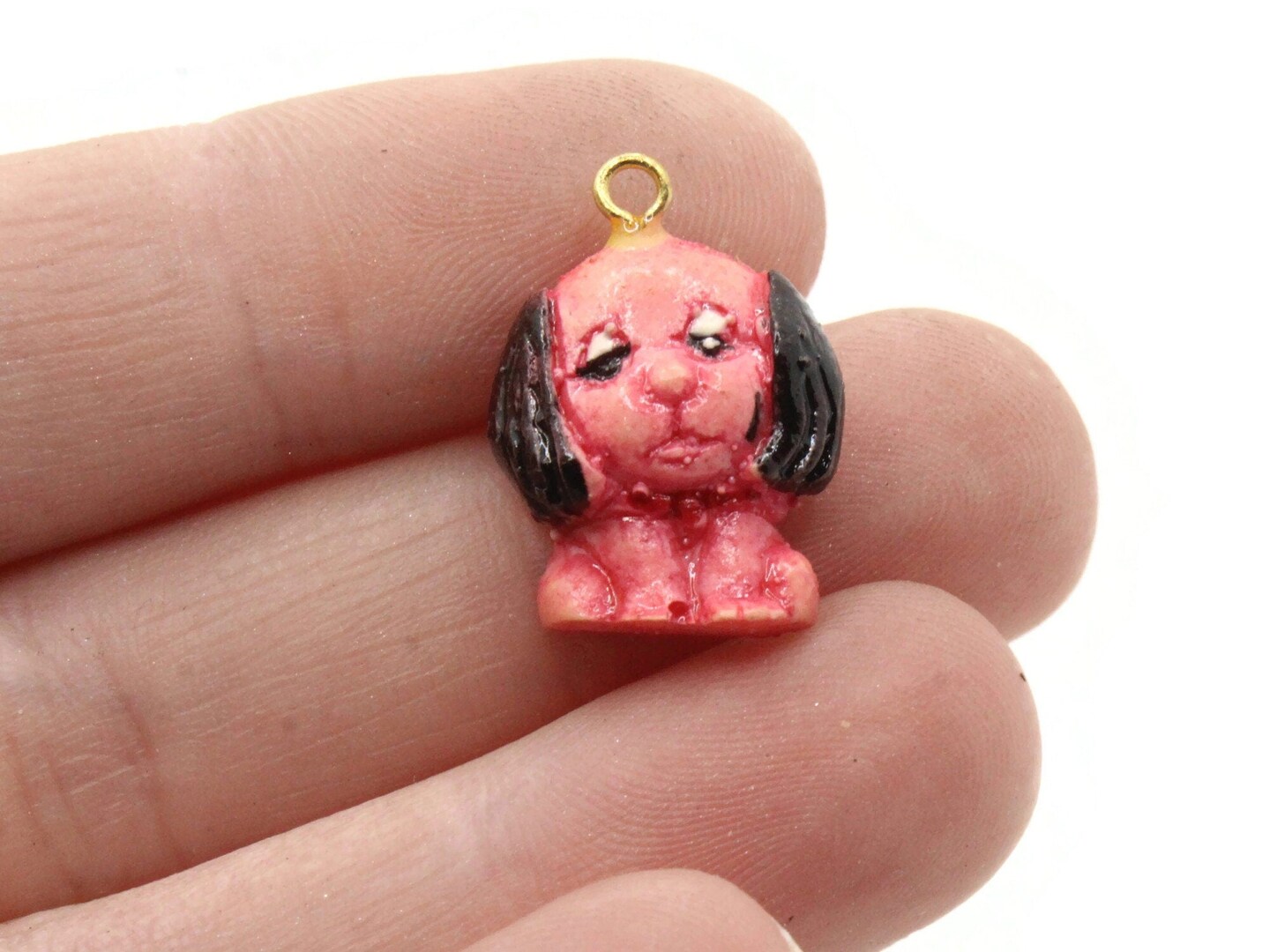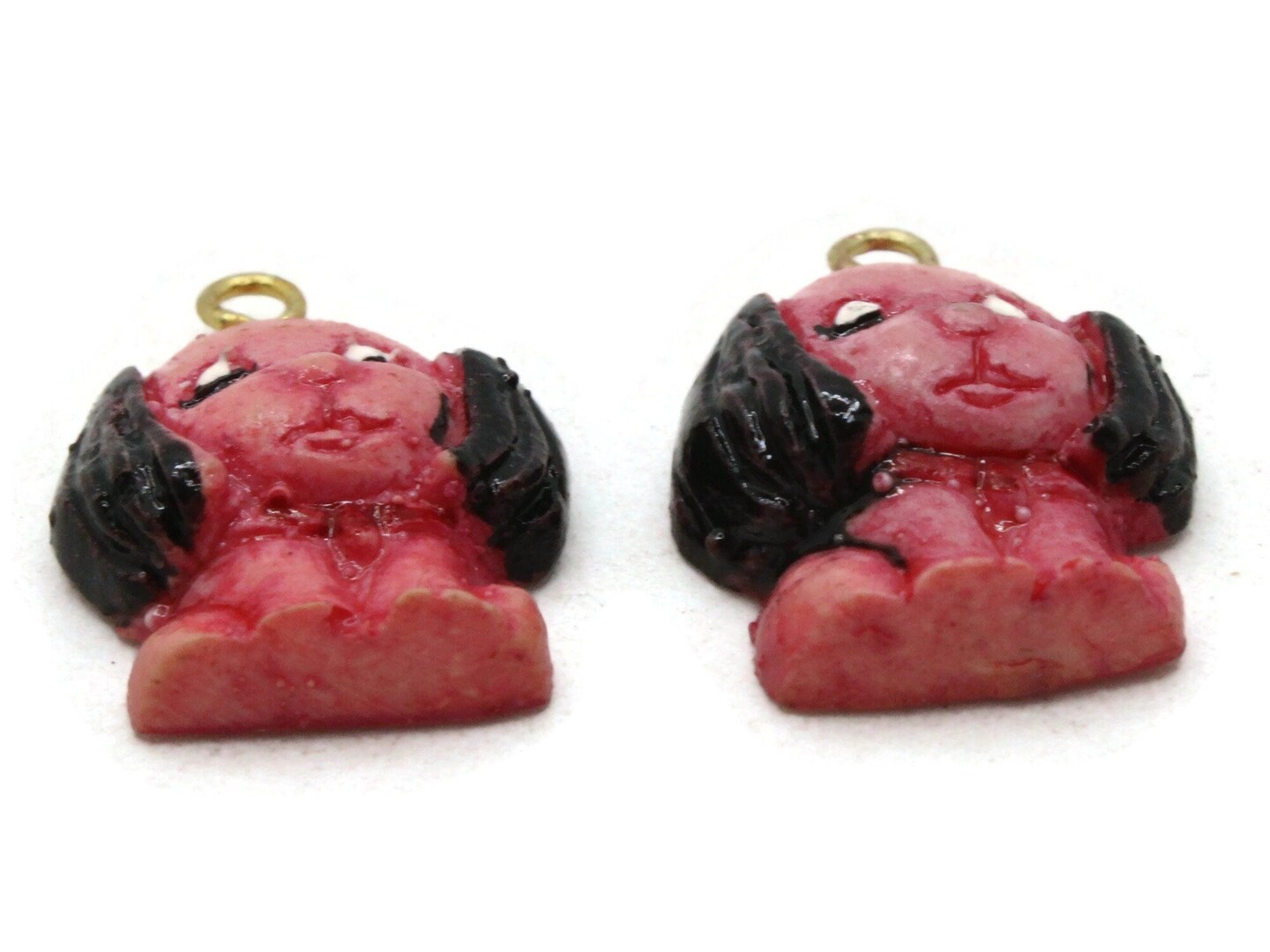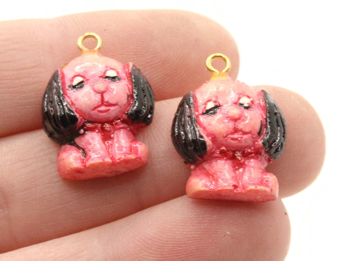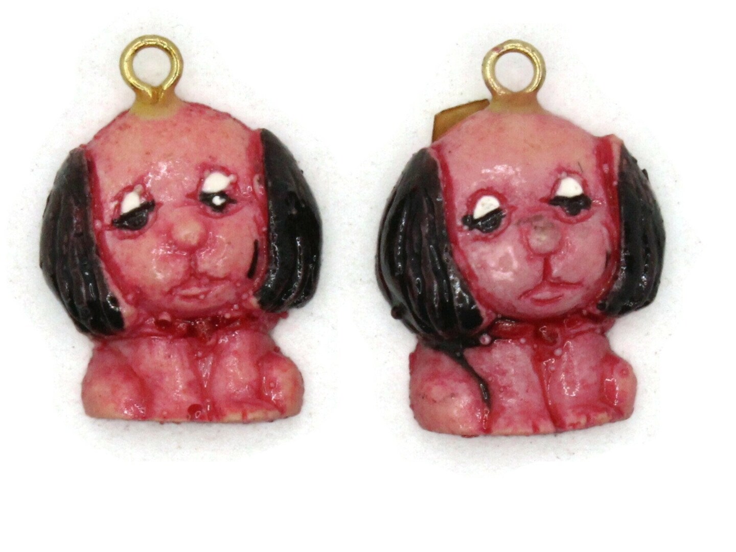 Pink Plastic Puppy Pendants Vintage Dog Charms