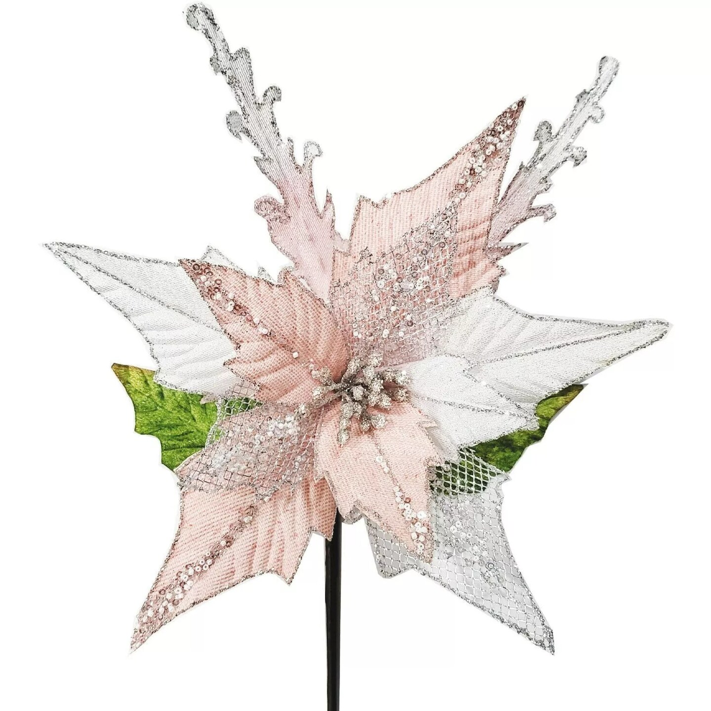 Pink Poinsettia Stem Velvety Flower Christmas Decoration Bendable Stem 26"x13"