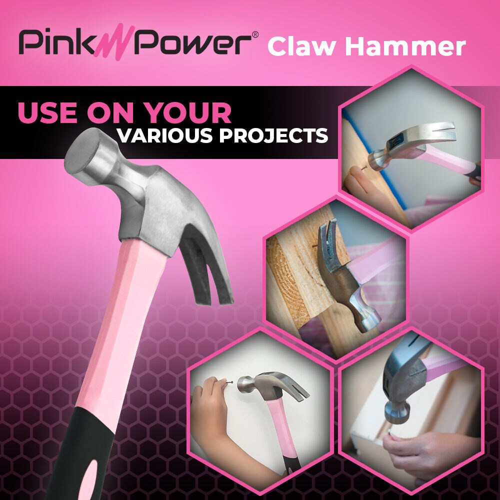 Pink Power 16oz Pink Hammer – Small Hammer for Women – Mini Claw Hammer for Pink Tools – DIY and Craft Hammer for Women All Purpose Hammer with Slip Resistant Handle for Girls Ladies