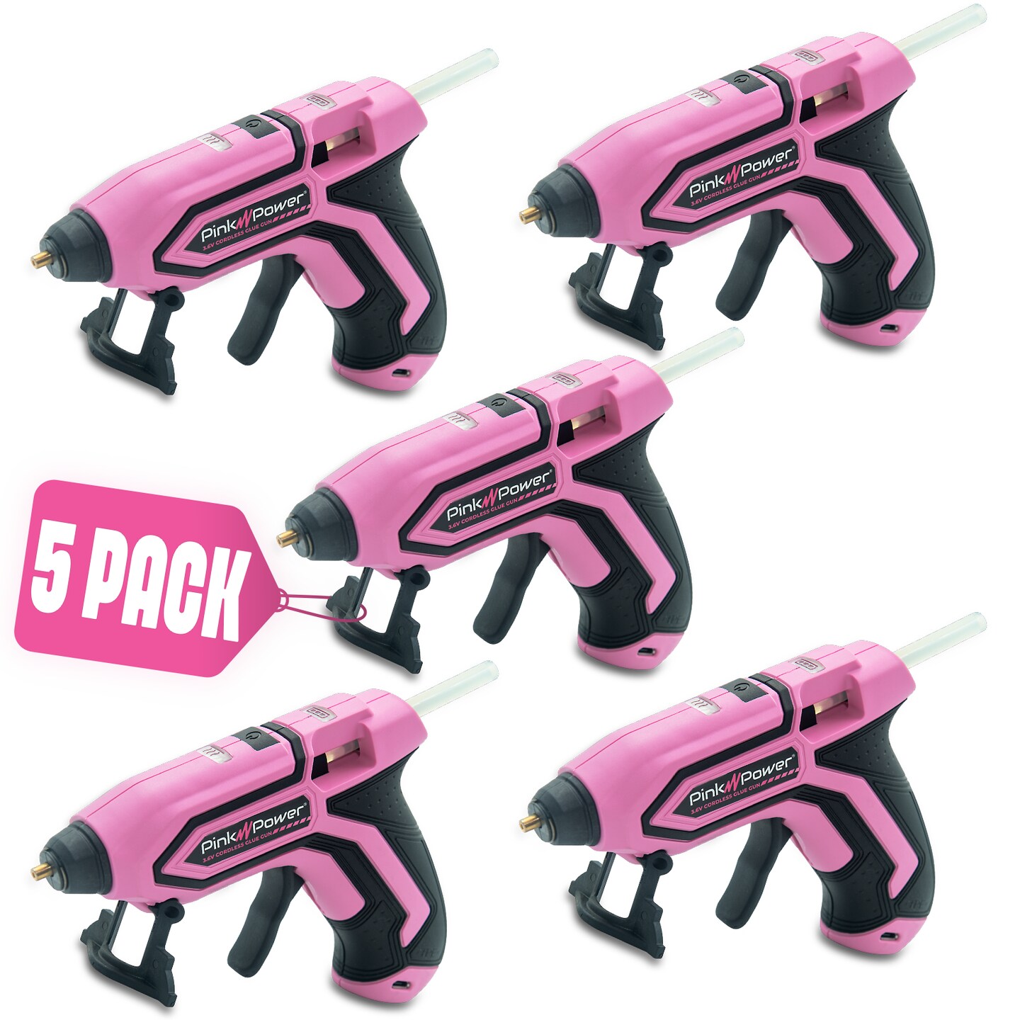 Pink Power 5 Set Mini Cordless Hot Glue Gun Kits with Stand – 100 Sticks, Battery Powered, Wireless, Fast Heating, USB Rechargeable, Portable Glue Gun for DIY Crafts, Home Repairs, and School Projects