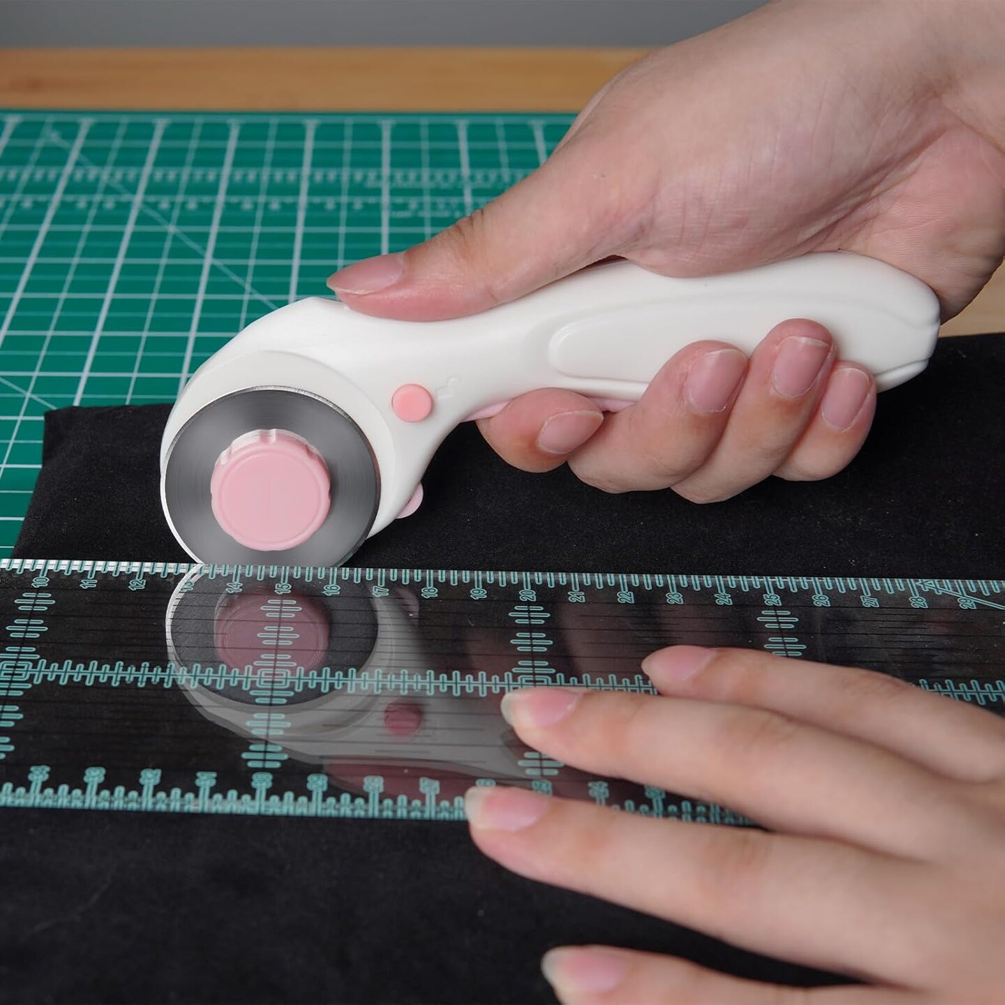 Pink Professional Sewing Scissors Set: Big Scissors, Small Scissors, Rotary Cutter with 3pcs Extra Blades for Cutting Fabric