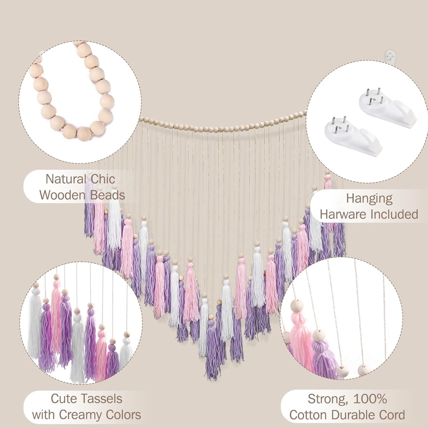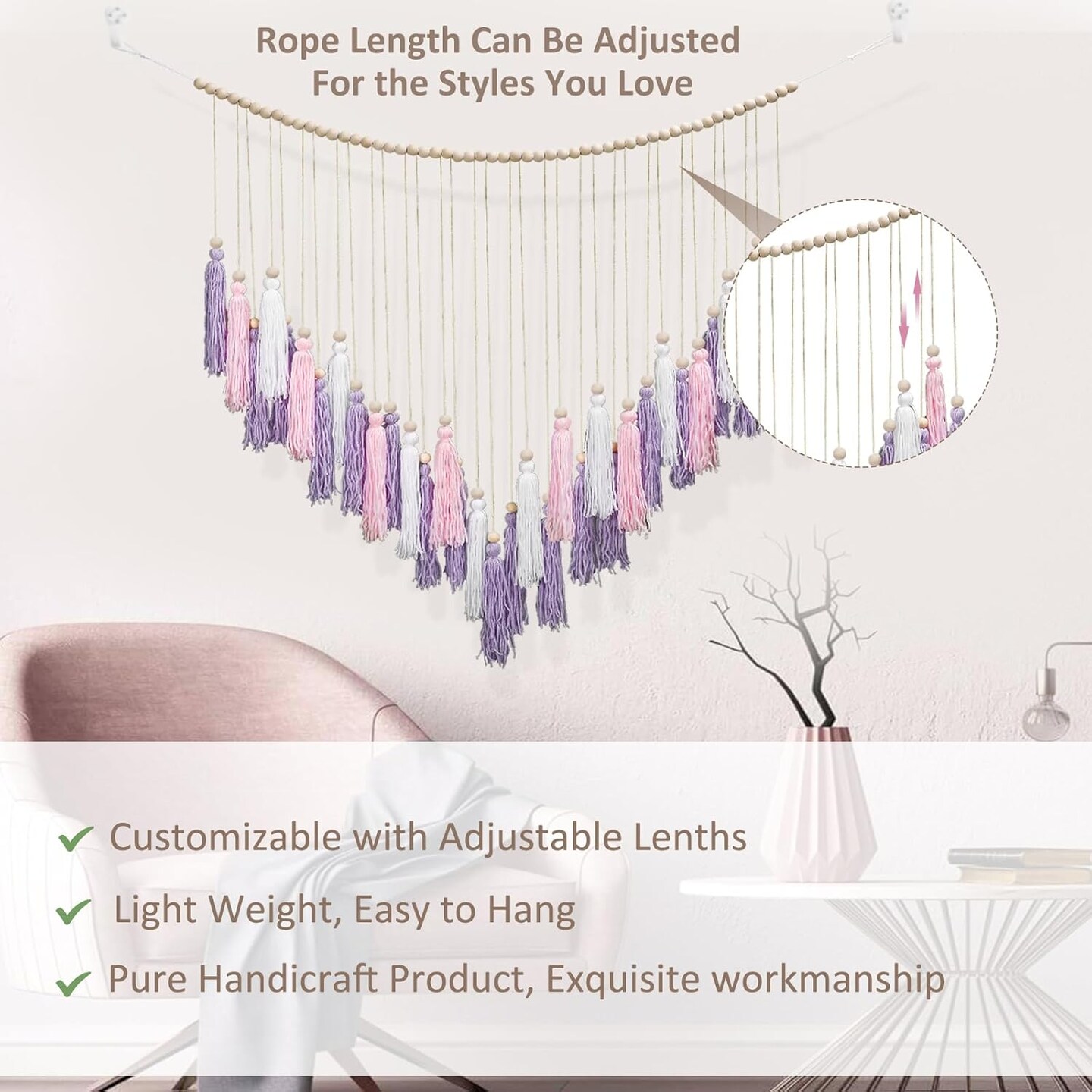 Pink & Purple Macrame Hanging Boho Wall décor (41" W x 32" H)
