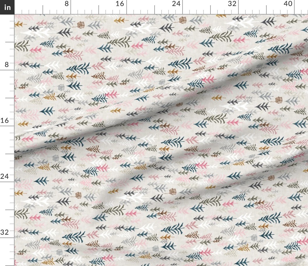 Pink Railroad Forest Adventure Outdoor Pine Fir Tree Custom Printed Fabric by Spoonflower Various Fabrics by the Yard or Fat Quarter