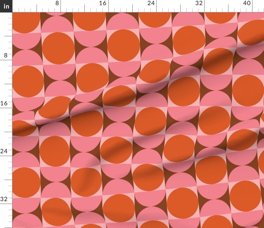 Pink Retro Orange Circles Geometric Abstract Square 60S Mid Century Modern Large Scale Custom Printed Fabric by Spoonflower Various Fabrics by the Yard or Fat Quarter