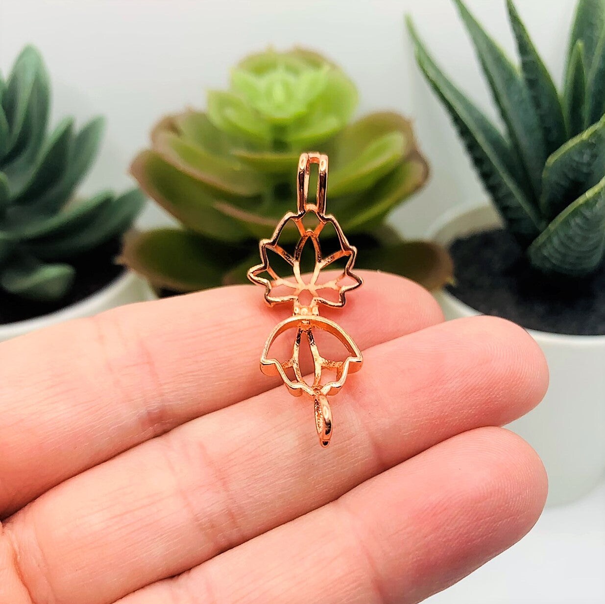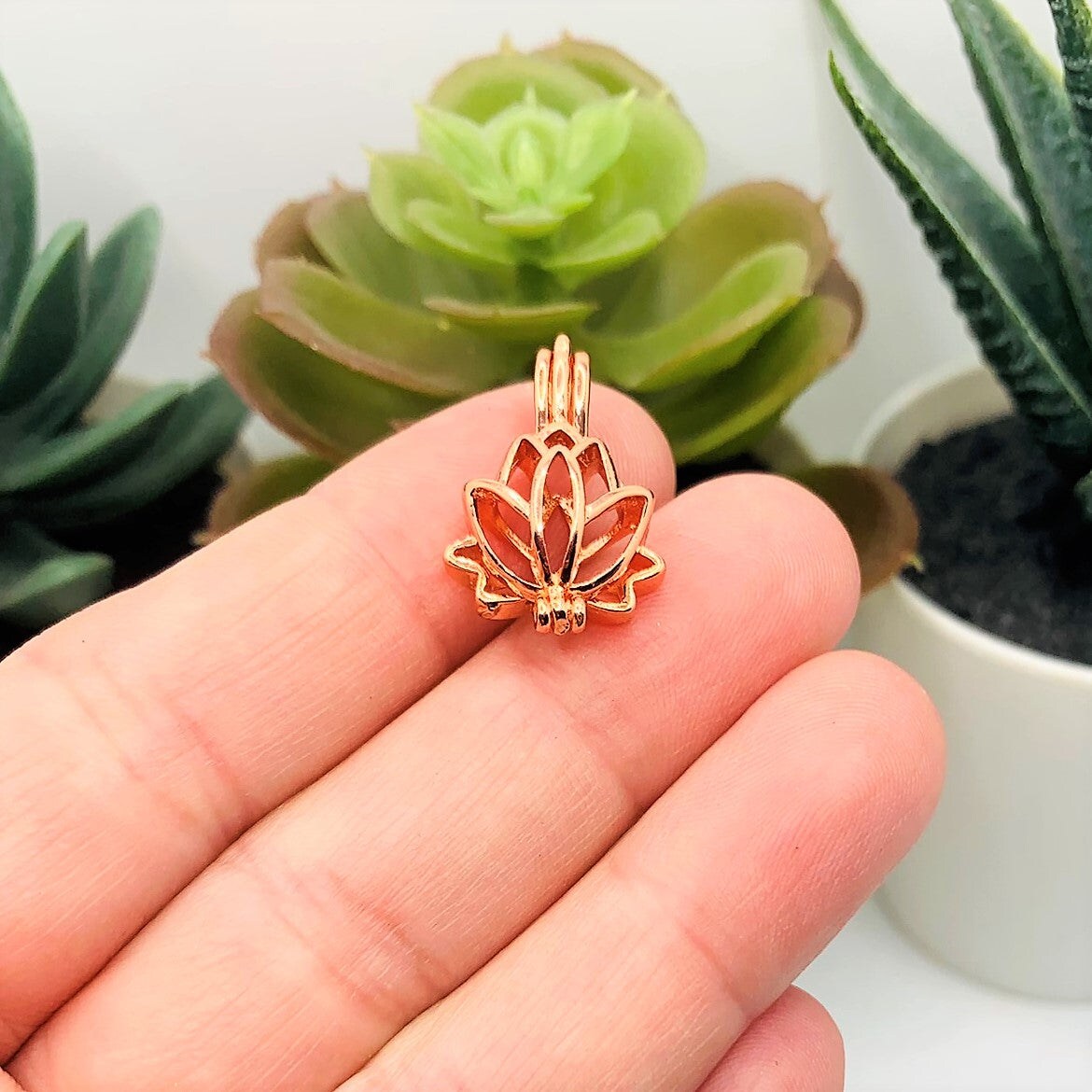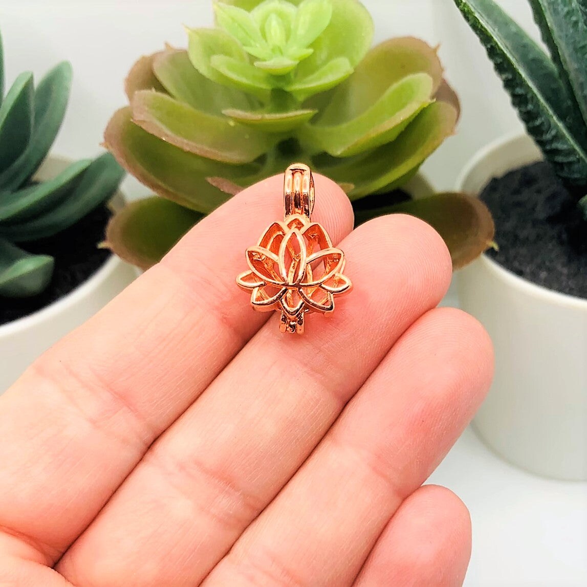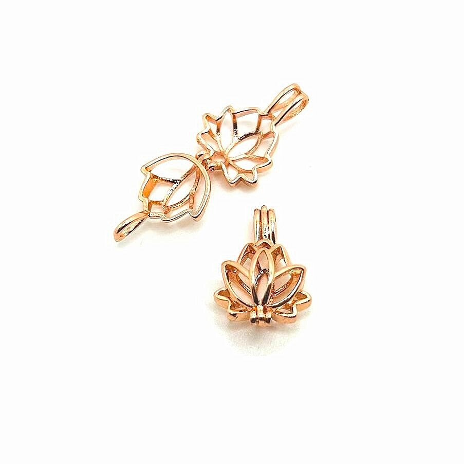 Pink Rose Gold Lotus Bead Diffuser Lockets, 14x20mm
