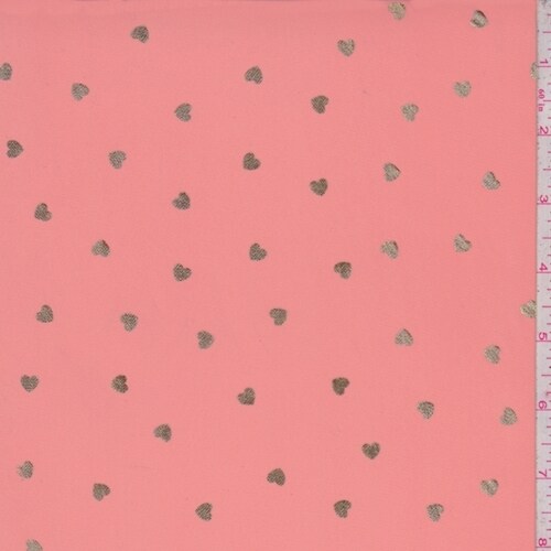 Pink Salmon/Gold Mini Heart Georgette Fabric By the Yard