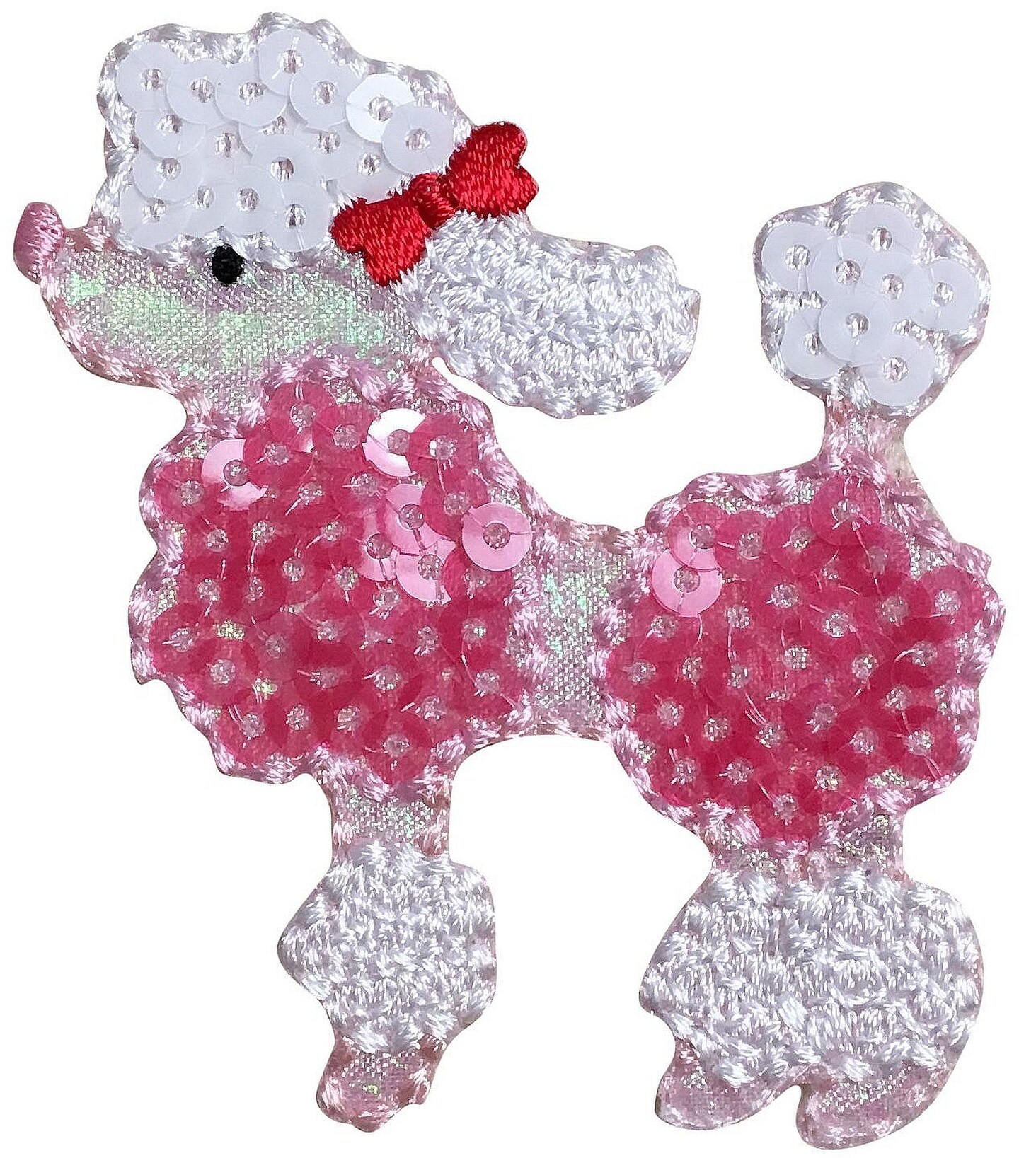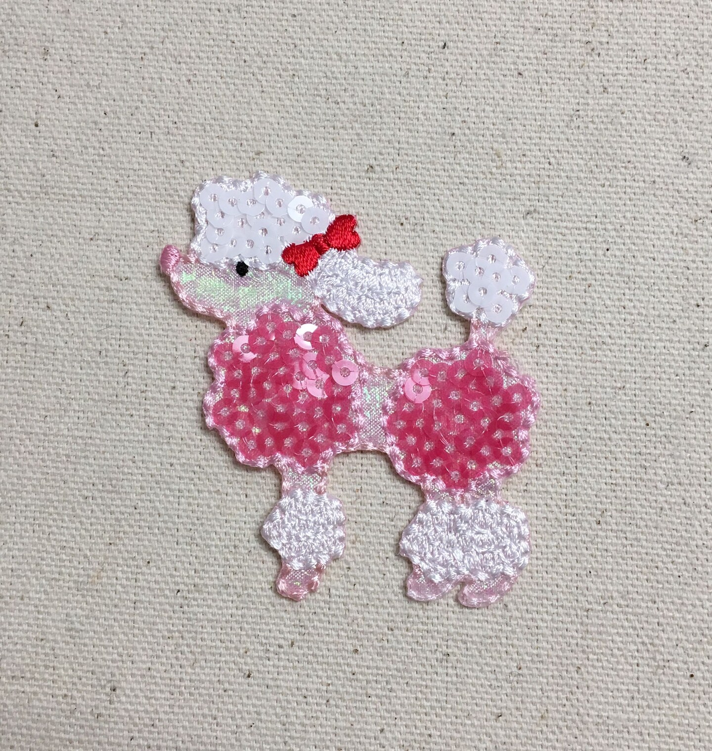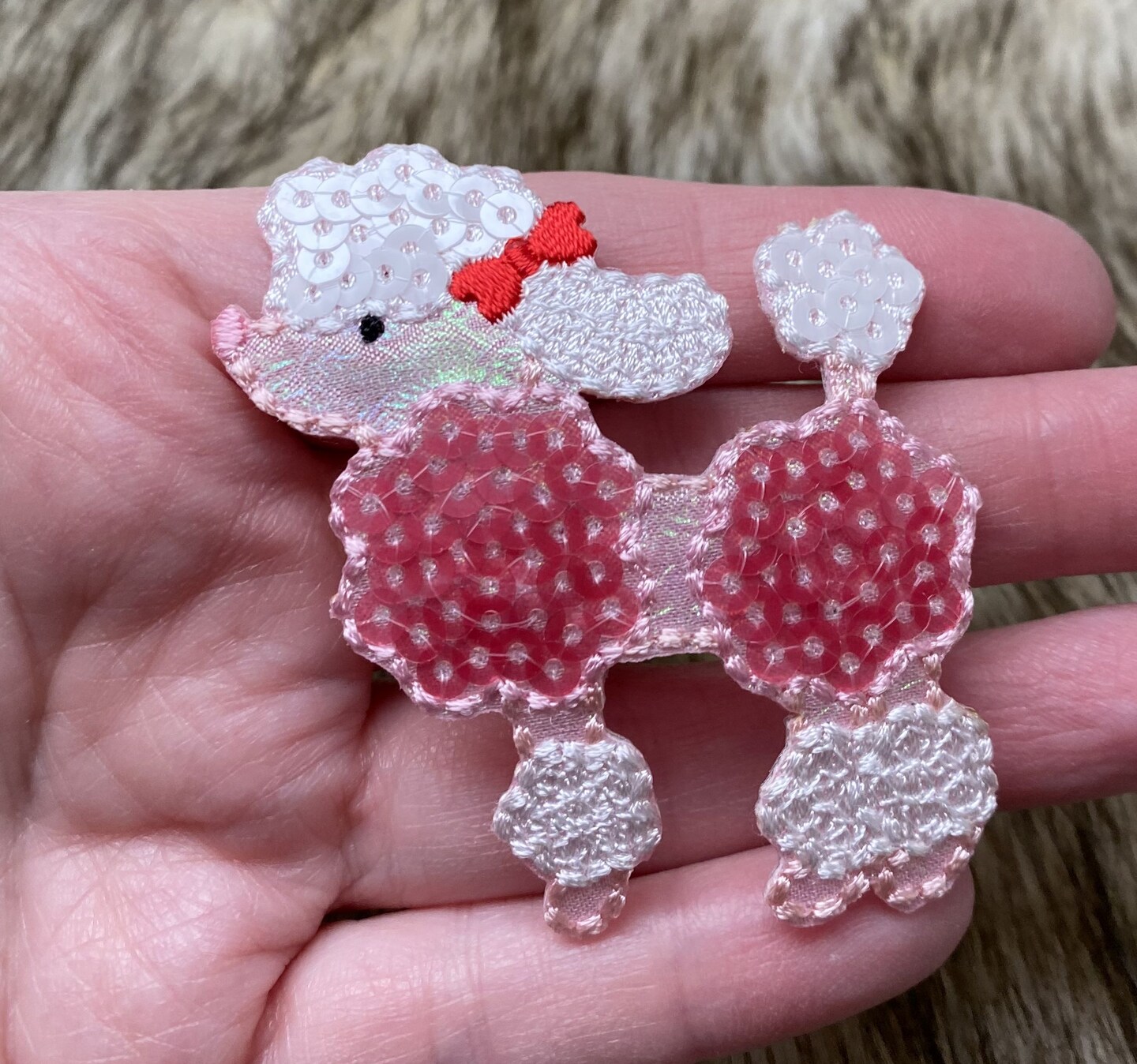 Pink Sequin Poodle Embroidered, Iron on Patch
