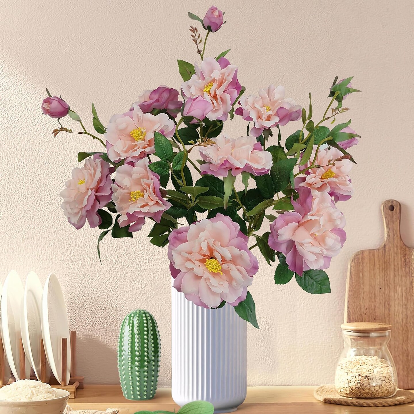 Pink Silk Peonies with Stems Real Look, 5 pcs Fake Peonies Artificial Flowers,Faux Peony Flowers for Decorations,Peony Artificial Flowers for Floral Arrangements