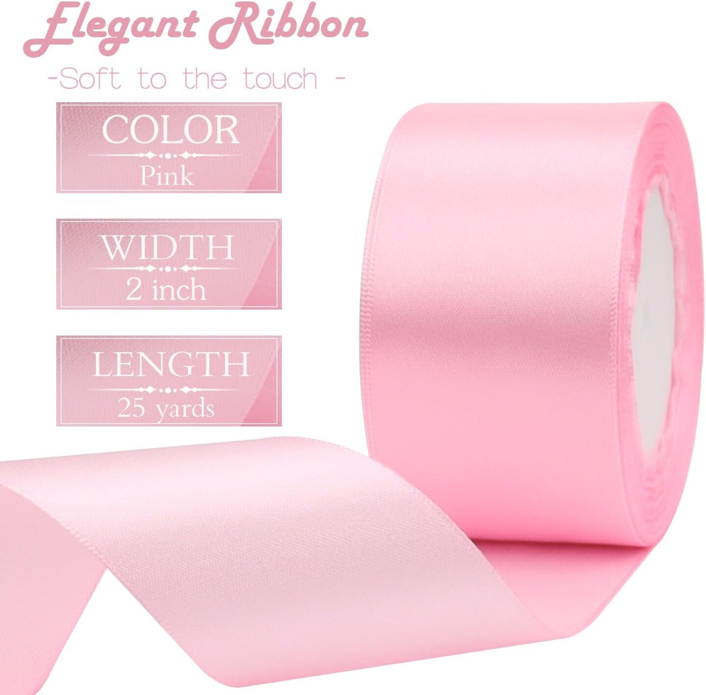 Pink Solid Satin Ribbon 2 Inch 25 Yards Solid Polyester Fabric Ribbon