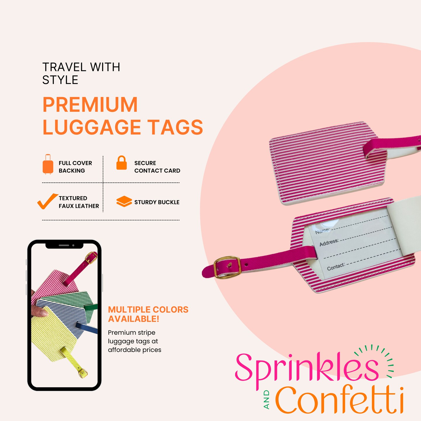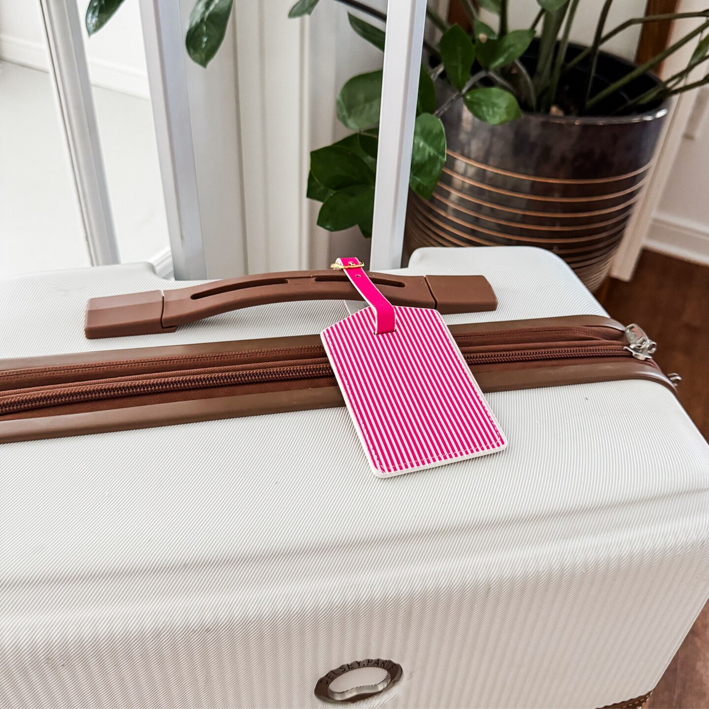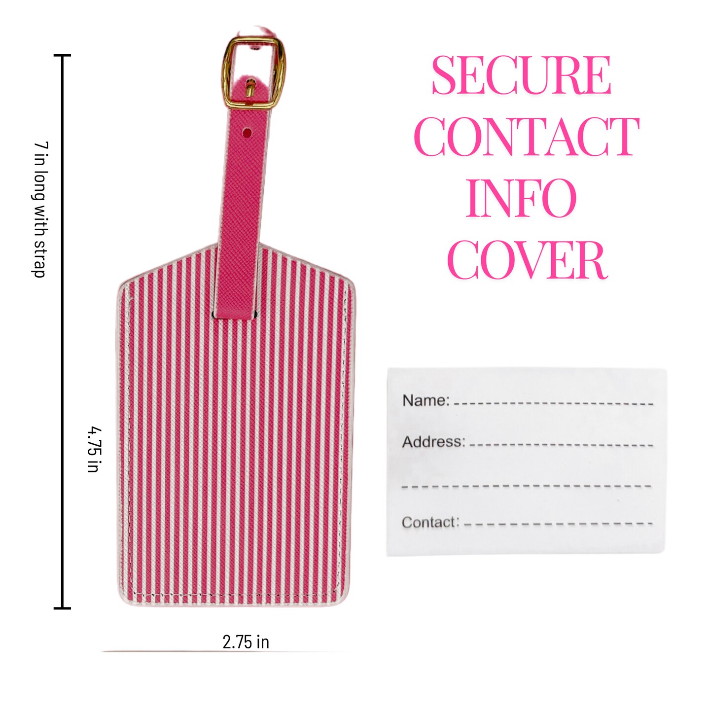 Pink Stripe Luggage Tag Set | Vegan Leather Travel Accessory | 2-Pack