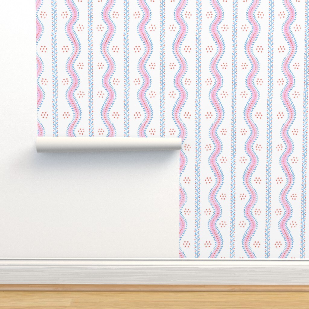 Pink Stripe Watercolor Bubblegum Traditional Classic Curved Custom Removable Wallpaper by Spoonflower Peel & Stick Wallpaper 2FT Wide