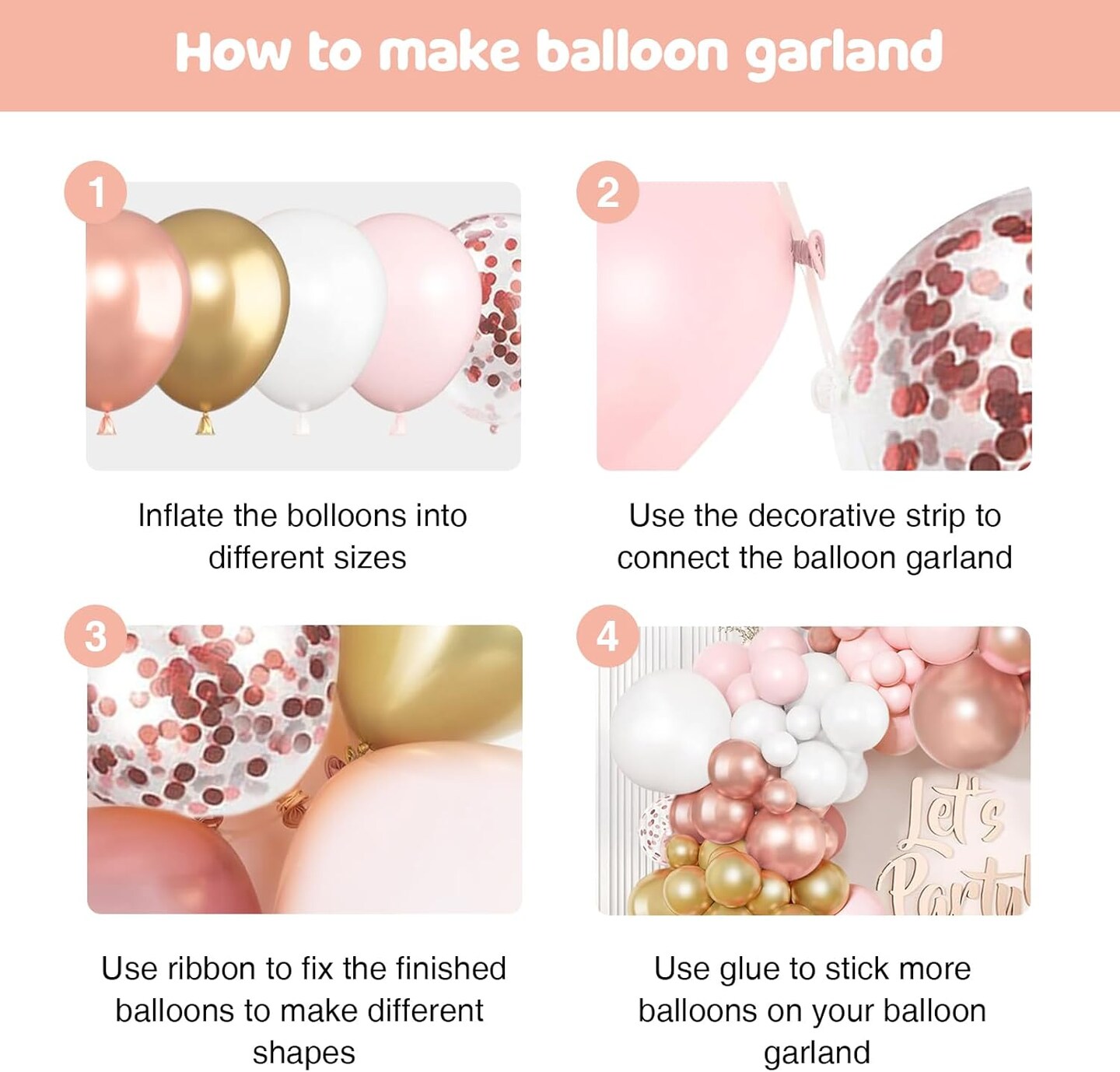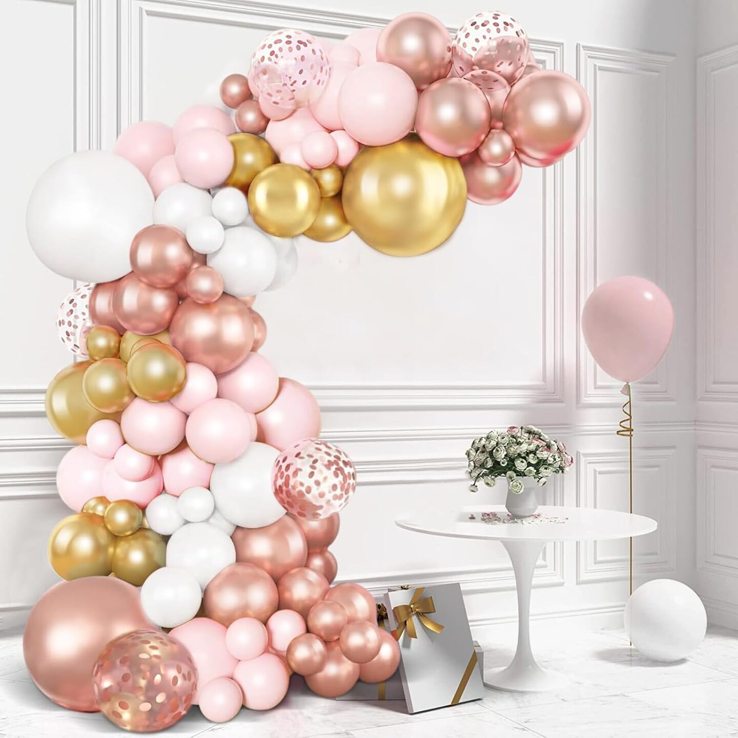 Pink, White & Rose Gold Balloon Garland Arch Kit 125pcs Party Decorations