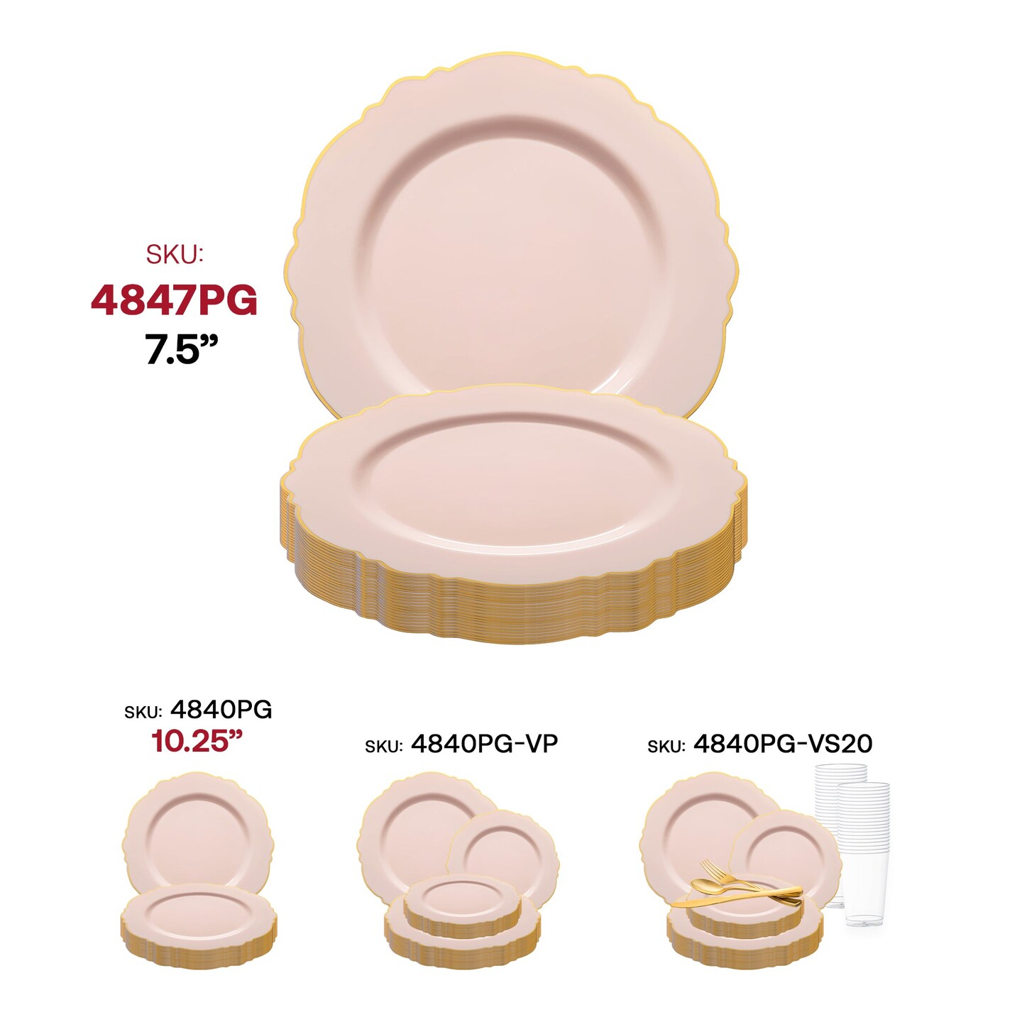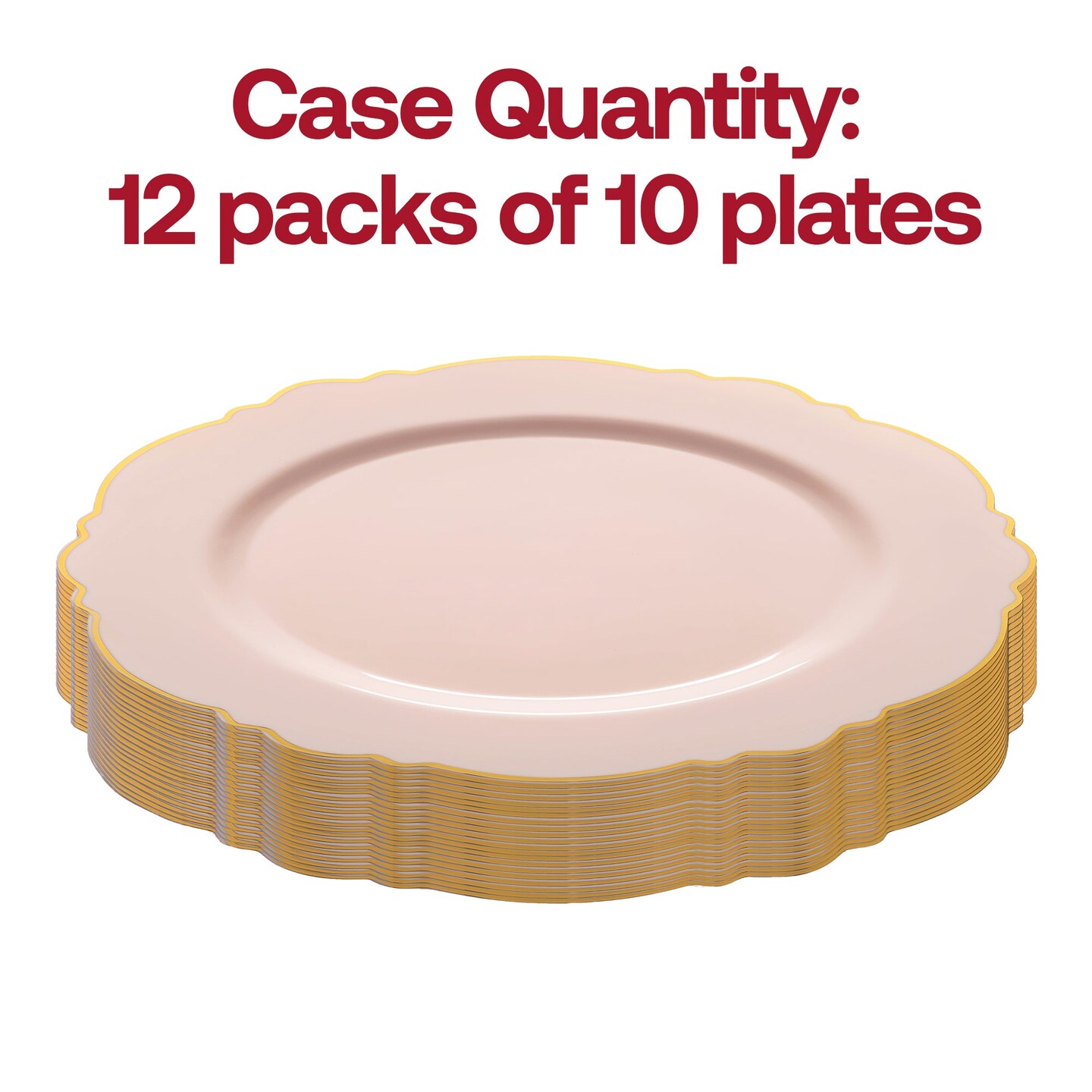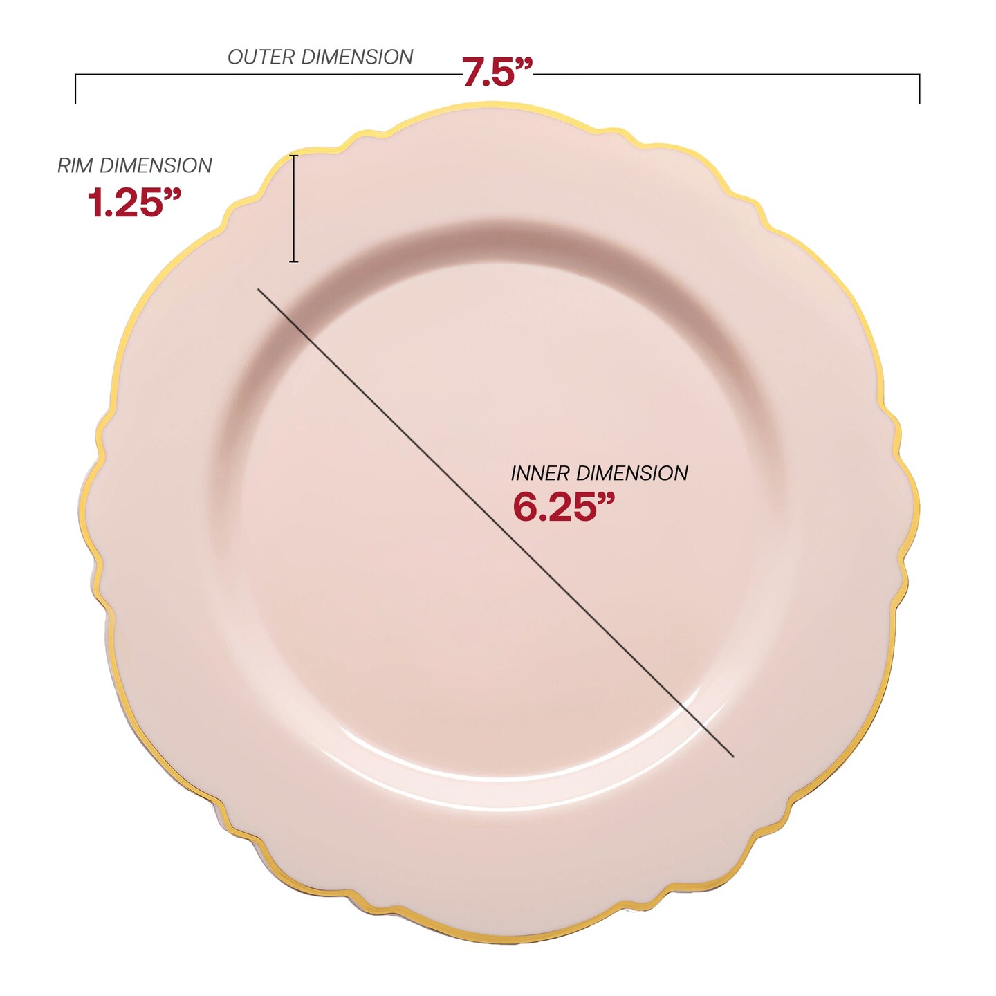 Pink with Gold Rim Round Blossom Disposable Plastic Appetizer/Salad Plates - 7.5" (120 Plates)