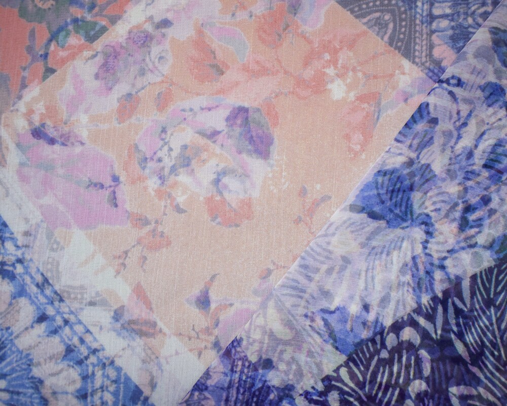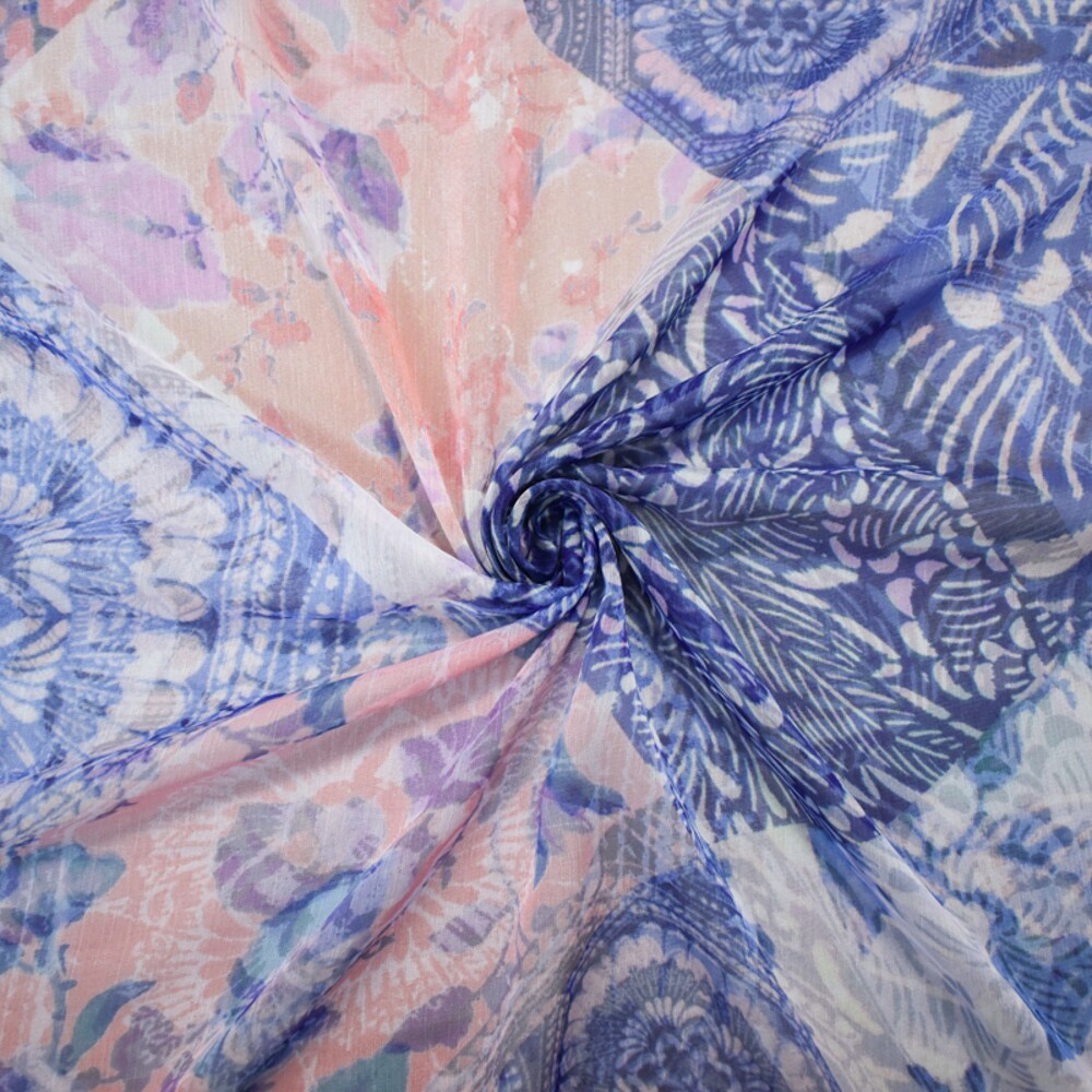 Pink-Blue-Multi Poly Ink Floral Printed Crinkle Yoryu Chiffon Woven Fabric By the Yard