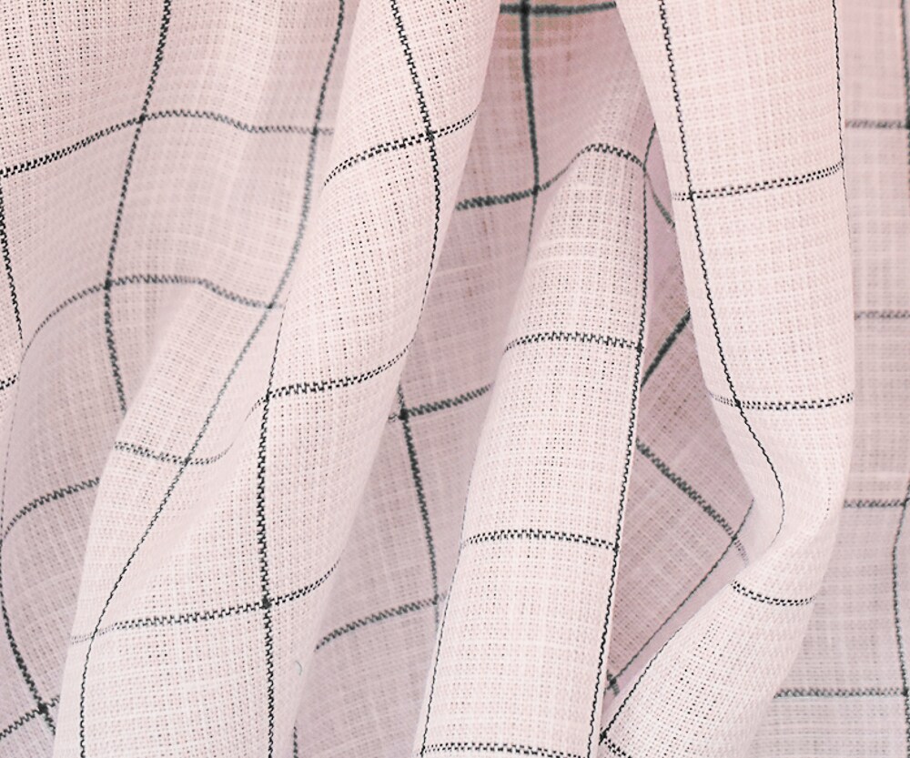 Pink-Deep Gray-White Spence Bryson Check Grid Irish Linen Woven Fabric By the Yard