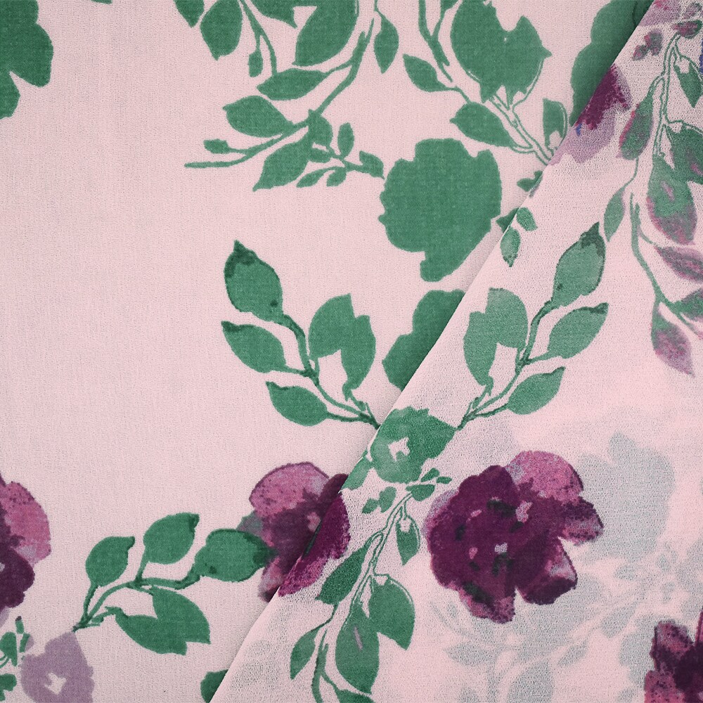 Pink-Green-Multi Floral Printed Poly Chiffon Woven Fabric By the Yard