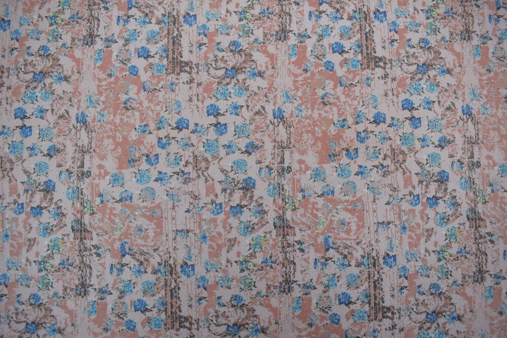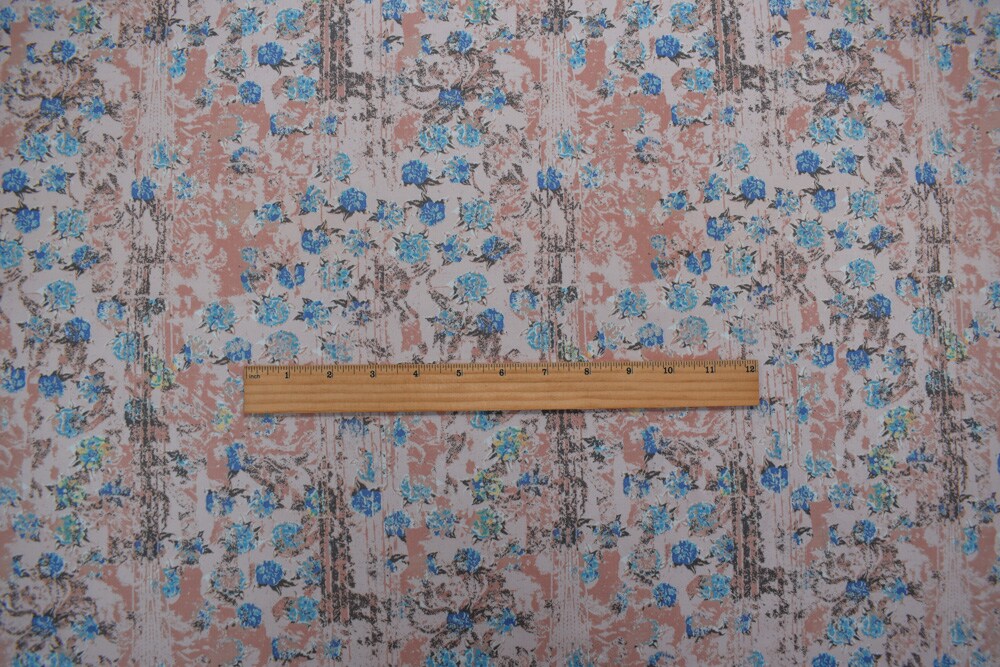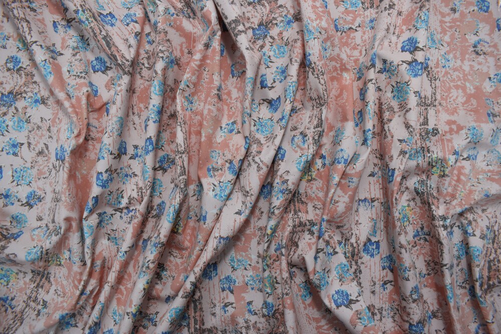 Pink-Multi Cotton Floral Texture Printed Stretch Twill Sateen Woven Fabric By the Yard