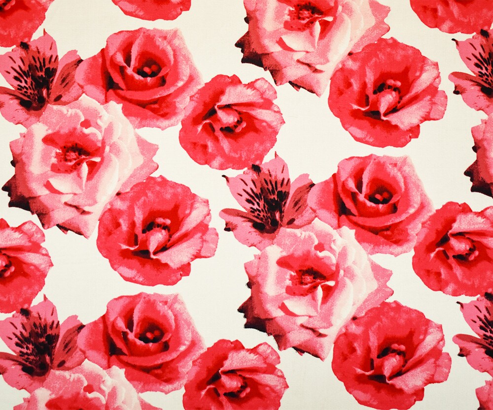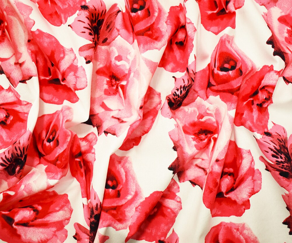 Pink-Off-White Cotton Stretch Spandex Floral Printed Poplin Woven Fabric By the Yard