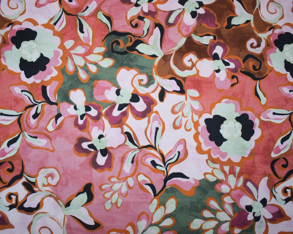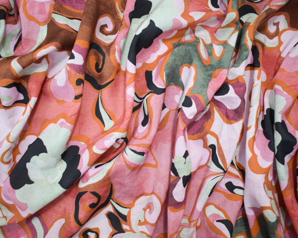 Pink-Orange-Multi Cotton-Rayon Abstract Floral Printed Lawn Woven Fabric By the Yard