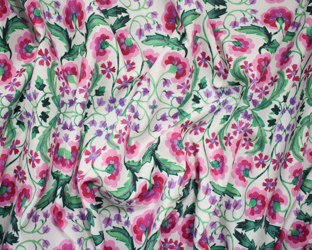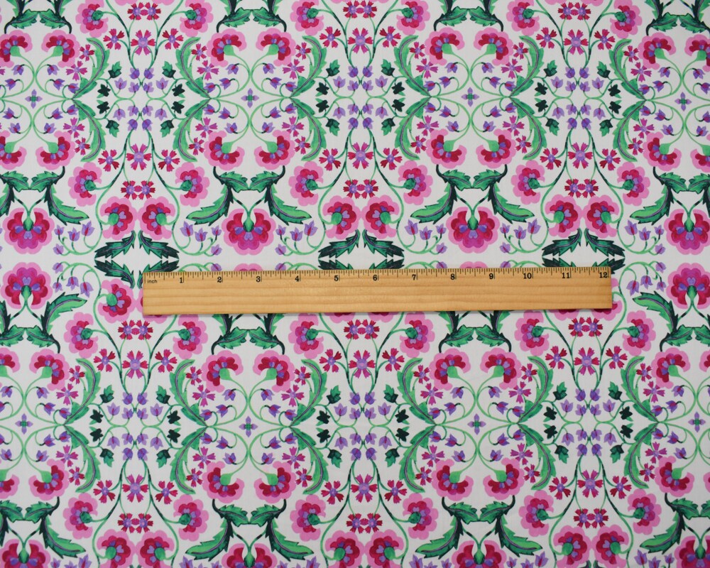 Pink-Purple-Green-Multi Cotton Floral Trellis Printed Broadcloth Woven Fabric By the Yard