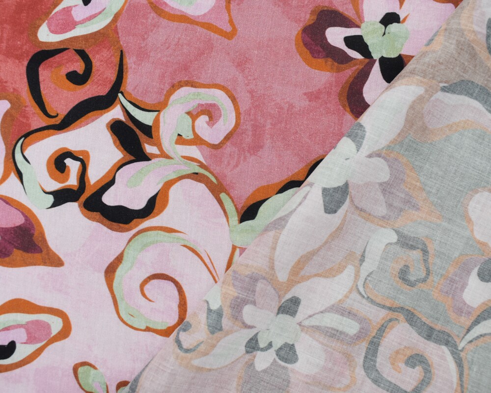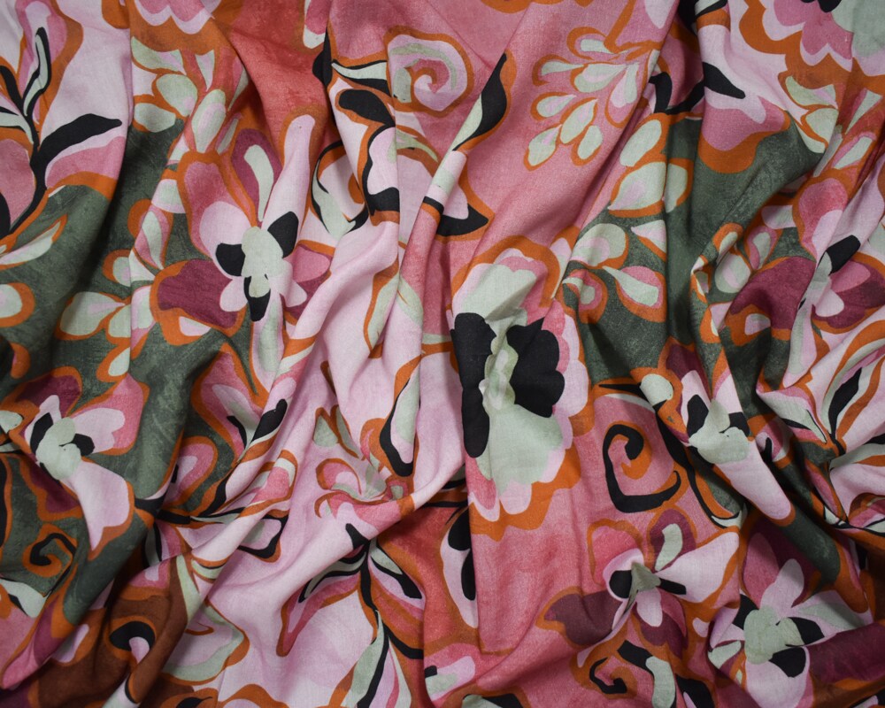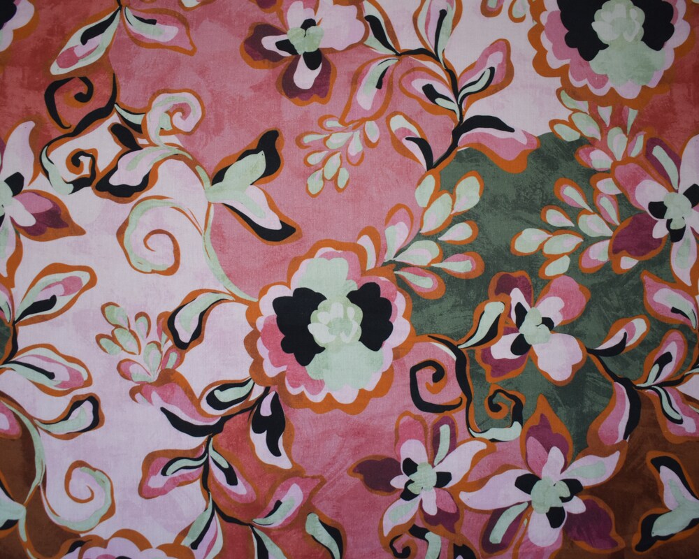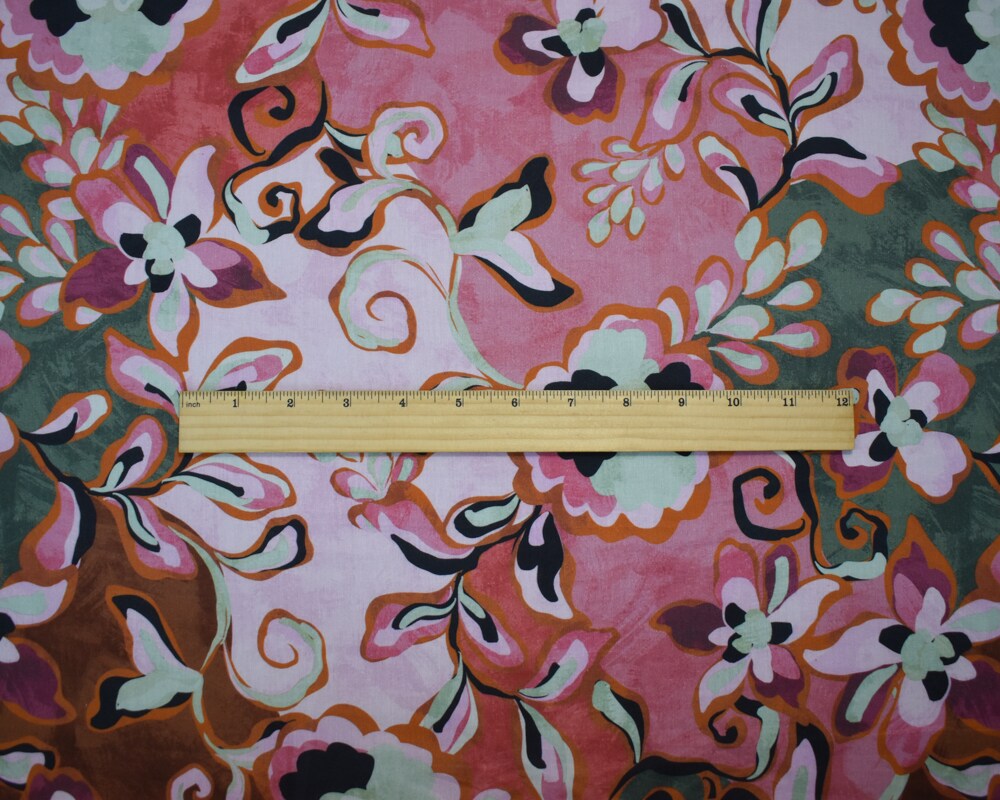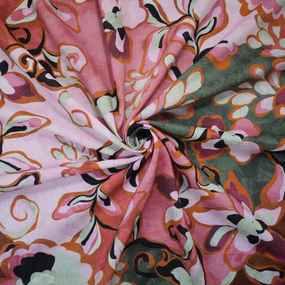 Pink-Red-Multi Cotton-Rayon Floral Printed Lawn Woven Fabric By the Yard